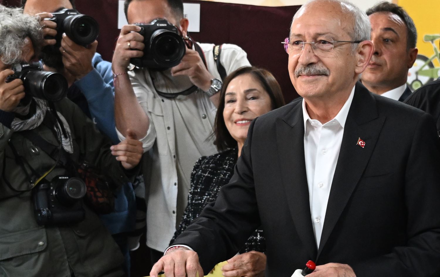 کەمال کڵچدارئۆغڵوو، سەرۆکی جەهەپە و بەربژێری هاوپەیمانیی میللەت بۆ پۆستی سەرۆککۆماری تورکیا، لەگەڵ هاوژینەکەی لە ئەنقەرە دەنگی دا.