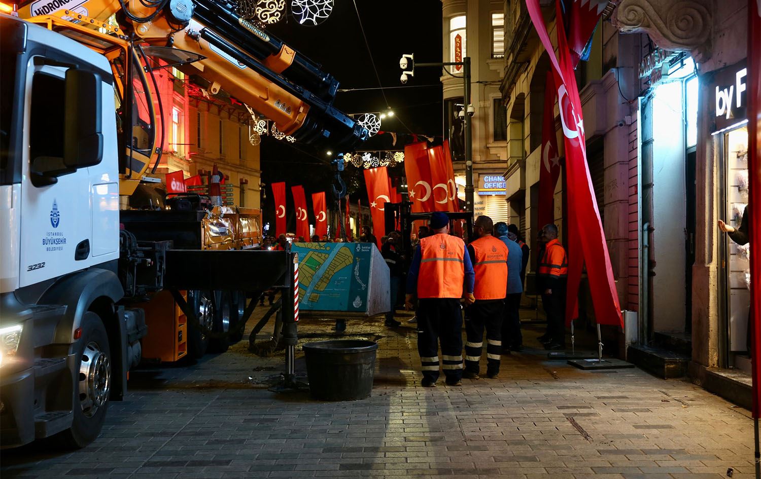 شەوی دووشەممە 14ـی تشرینی دووەمی 2022 بە بڕیاری قایمقامی ئیستەنبووڵ، لە شەقامی ئیستقلالی تاکسیم، دار و گۆزە کۆنکرێتییەکان بۆ مەبەستی ئەمنی لابران.