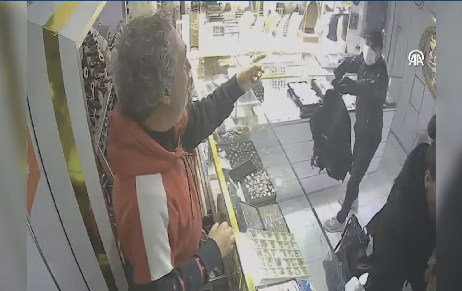 لە گرتە ڤیدیۆییەکەدا دەردەکەوێت، دزێکی چەکدار و دەمامکدار دەچێتە ناو دووکانەکە، چەکەکەی لە زێڕنگرەکە رادەگرێت، کڕیارێکی ژن کە ئەوە دەبینێت، بەترسەوە خۆی دەکێشێتە دواوە و خاوەن دووکانەکەش زێڕەکان دەخاتە نێو ئەو جانتایەی کە دزەکە پێیداوە.