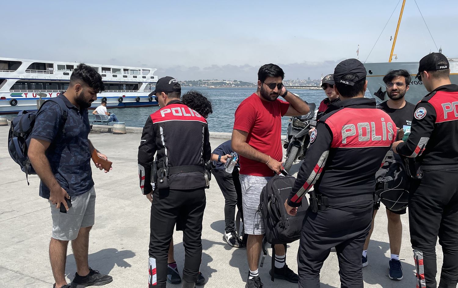 پۆلیسی تورکیا پشکنین بۆ چەند کەسێکی بیانی دەکات لە کاتی گەڕان بەدوای کۆچبەرە نایاساییەکاندا. وێنە: AA