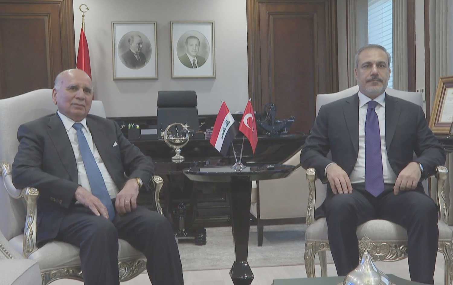 فوئاد حوسێن، وەزیری دەرەوەی عێراق رۆژی سێشەممە 19-12-2023 لە ئەنقەرە لەلایەن هاکان فیدان، وەزیری دەرەوەی تورکیاوە پێشوازی لێکرا و بە ئامادەبوونی ژمارەیەک بەرپرس کە دووانیان وەزیری حکومەتی هەرێمی کوردستانن، کۆبوونەوە و دواتریش راگەیێندراوێکی هاوبەشیان بڵاوکردەوە.