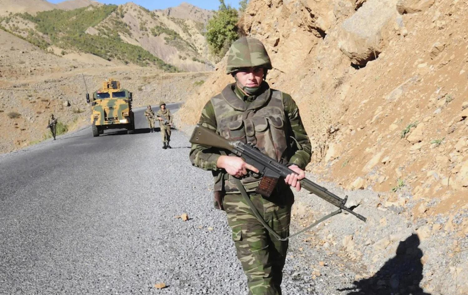 چەند سەربازێکی تورکیا لە سنووری پارێزگای هەکاری لە باکووری کوردستان. وێنەکە بۆ روونکردنەوەی هەواڵەکەیە