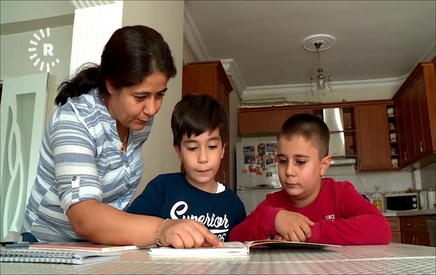 دایکێک لە ئامەد لە ماڵەوە وانەی کوردی بە منداڵەکانی خۆی دەڵێتەوە. وێنە: ماشەڵڵا دەکاک - رووداو