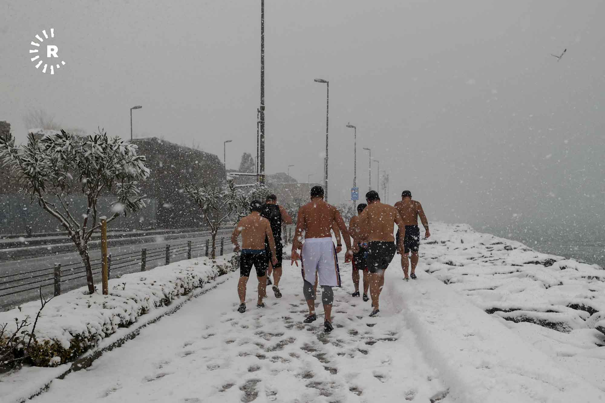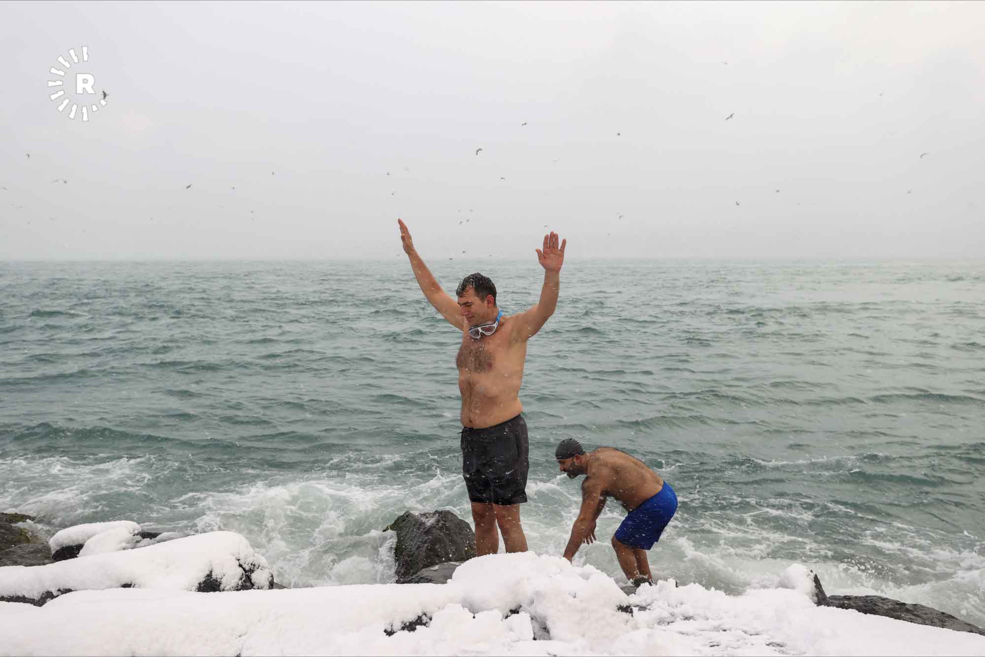 وێڕای بهردهوامی بهفربارین و ئهو سهرماوسۆڵهی شارهكهی گرتووهتهوه، گرووپێك بەناوی "سهركهوتووهكانی سارایبورنو" لهنێو دهریا مهلهوانی كرد.