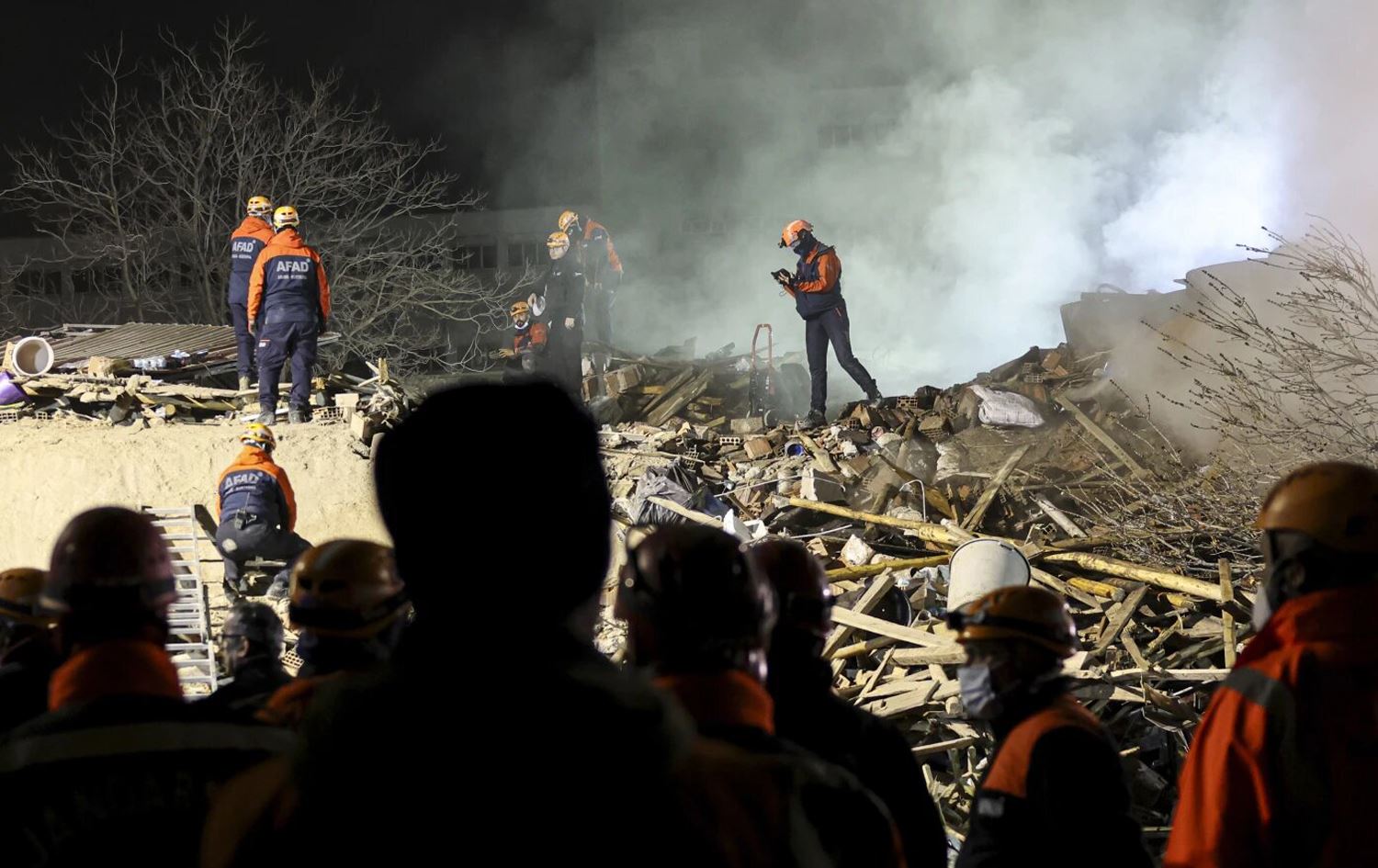 کارمەندانی بەرگریی شارستانی لەنێو داروپەردوودا بەدوای هاووڵاتییە بێسەروشوێنبووەکاندا دەگەڕێن. وێنە: AP