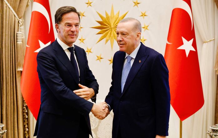 سەرۆکایەتیی پەیوەندییەکانی کۆماری تورکیا لە تۆڕی کۆمەڵایەتیی ئێکس راگەیێنراوێکی بڵاوکردووەتەوە کە تێیدا باس لەوە دەکات، رەجەب تەیب ئەردۆغان لە کۆشکی کۆماریی تورکیا لە ئەنقەرە پێشوازیی لە مارک روتە کردووە. هەروەها هاتووە: "لە کۆبوونەوەی نێوانیاندا گفتوگۆ لەسەر تەوەرەکانی شەڕی رووسیا-ئۆکراینا، بەرەنگاربوونەوەی تیرۆر، هەوڵی کۆتاییهێنان بە کۆمەڵکوژیی فەڵەستین و رۆڵی تورکیا لە هاوپەیمانیی ناتۆ کرا".