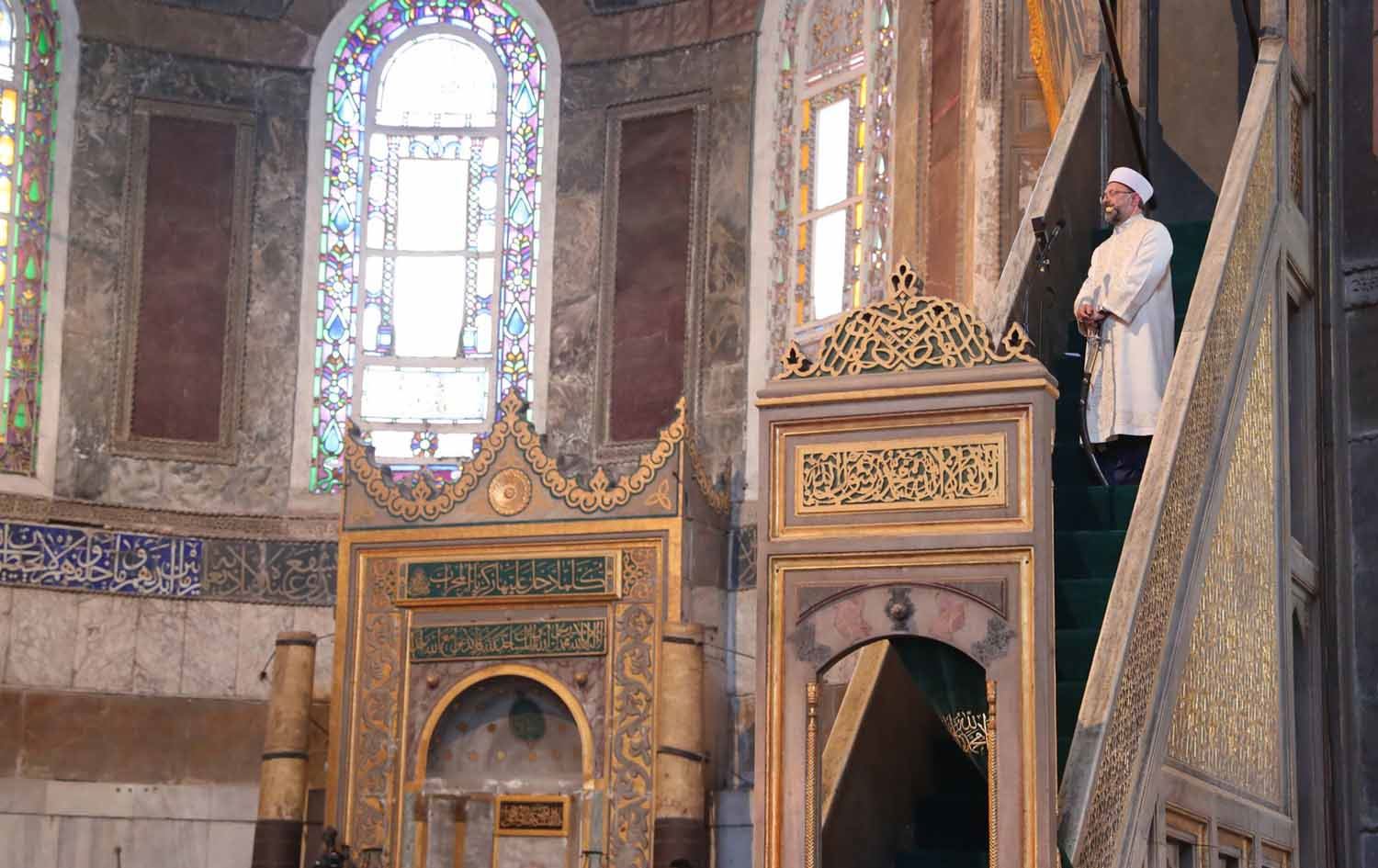 سەرۆکی کاروباری ئایینیی تورکیا لە گوتارەکەیدا گوتی، "سوڵتان محەممەد فاتیح بە مەبەستی ئەوەی ئایاسۆفیا بکاتە مزگەوت، ئەو کاتە کردی بە وەقف. لە باوەڕی ئێمەدا وەقف دەستی بۆ نابرێت. ئەوەی دەستی بۆ ببات دەسووتێت! هەرکەسێک مەرجەکانی ئەو لایەنە ژێرپێ بخات کە شوینێکی کردووەتە وەقف، بەر لەعنەت دەکەوێت".