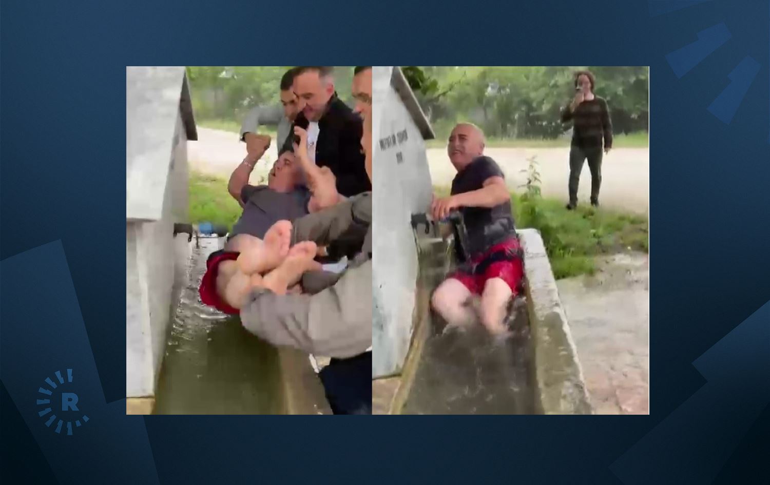 دیمەنی یەکێک لەو کەسانە لە تۆڕە کۆمەڵایەتییەکان بڵاوبووەوە. گەنجەکان دەیبەن و هەڵیدەدەنە نێو کانیی سەهۆڵاوەکە. ئەو کەسەی سزادراوە دەڵێت، هیچ کێشەیەکی نییە تەنیا ئاگاداری بن و نەکەوێت.