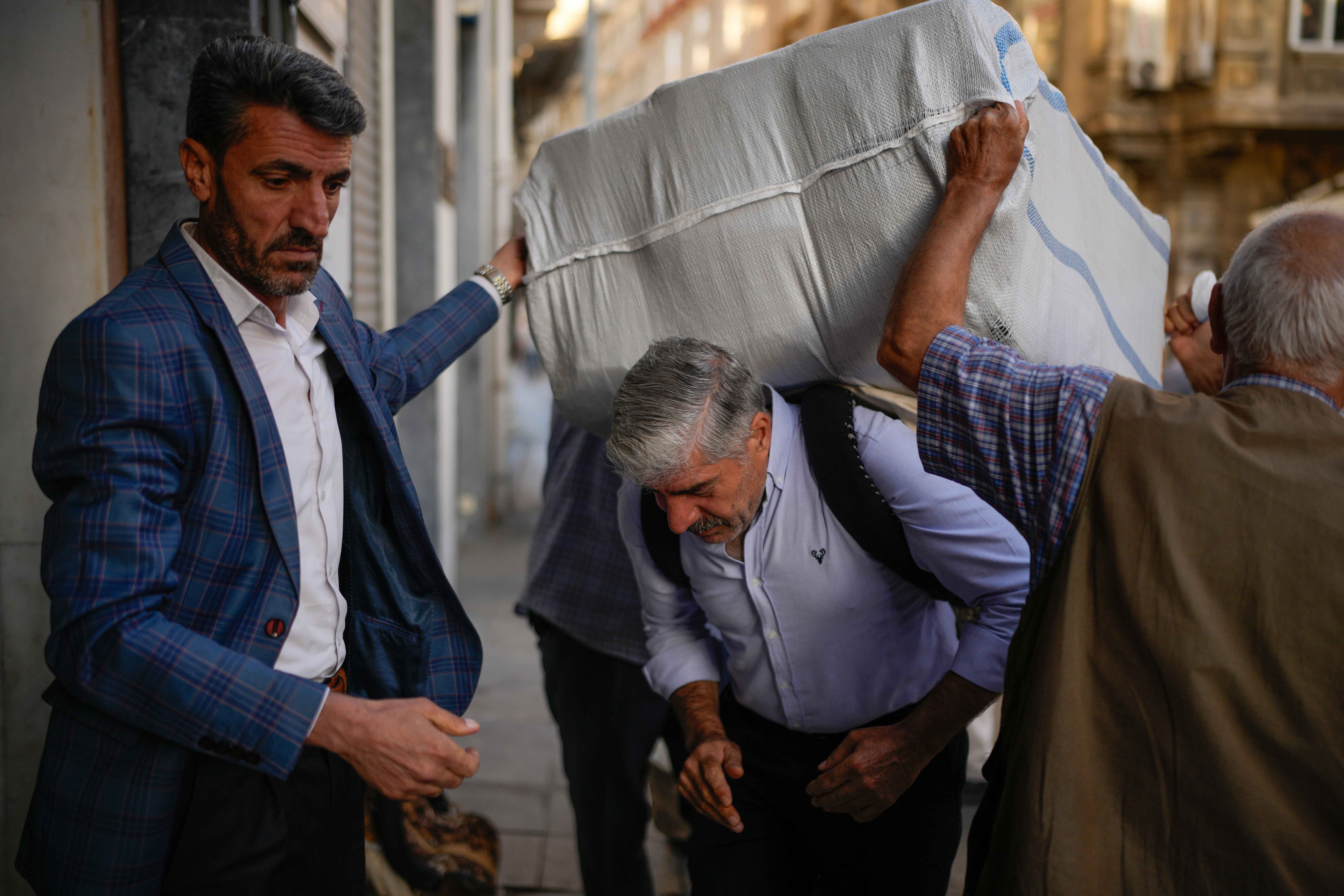 عومەر ئۆکان، تەمەن 60 ساڵ، ماوەی سێ دەیەیە وەک حەماڵ کاردەکات و زۆرجار رۆژانە زیاتر لە 500 کیلۆگرام بە پشت دەگوازێتەوە.