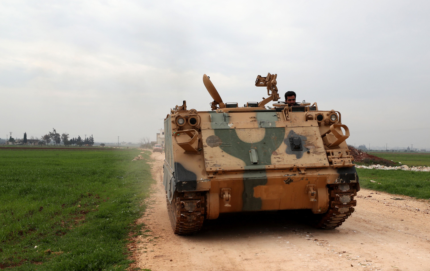 تانکێکی سوپای تورکیا لە شارۆچکەیەکی ئیدلب لە سووریا، وێنە؛ AFP