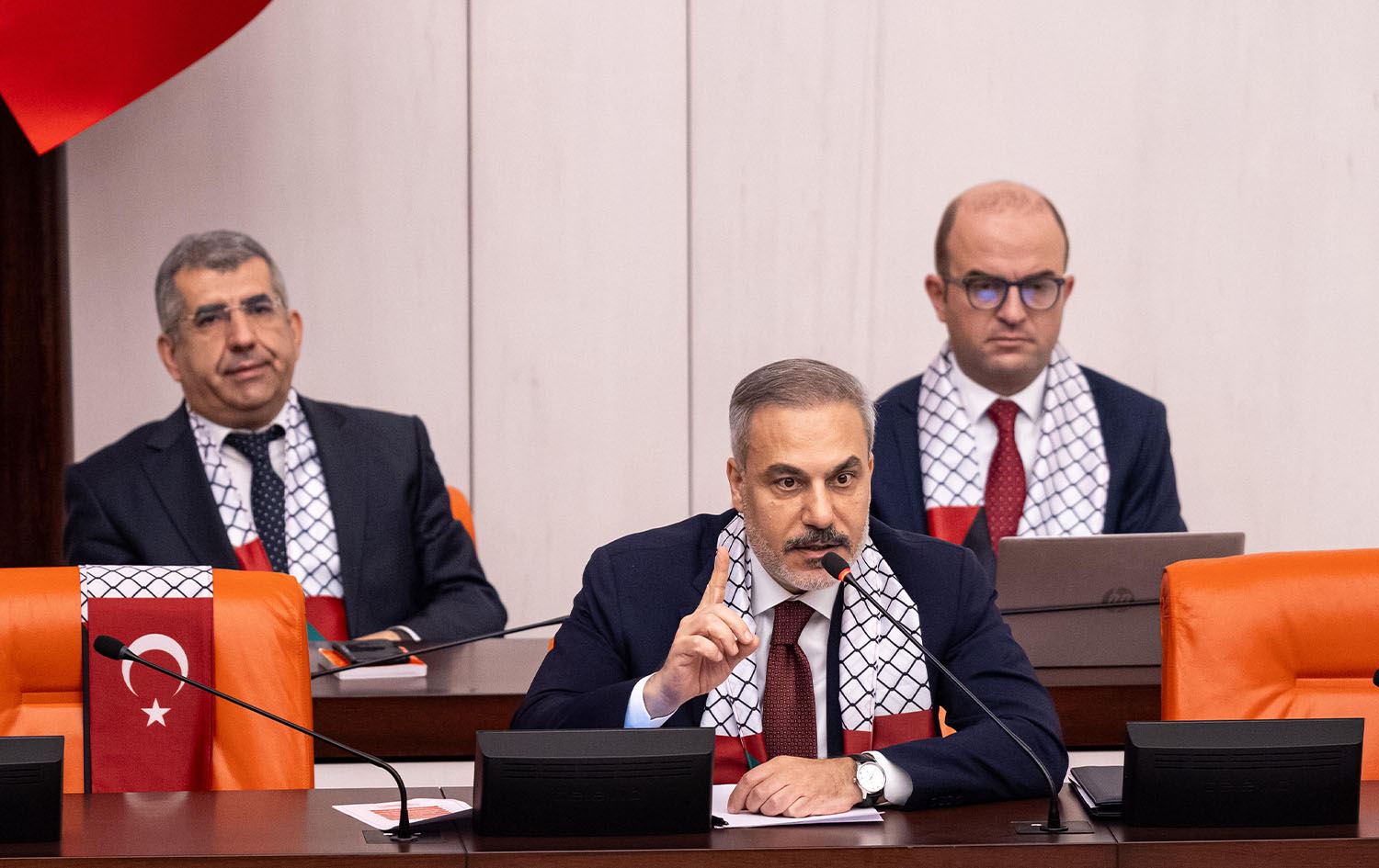 هاکان فیدان، وەزیری دەرەوەی تورکیا لەبارەی پرسی غەززە لە پەرلەمانی وڵاتەکەی قسە دەکات. وێنە: AA