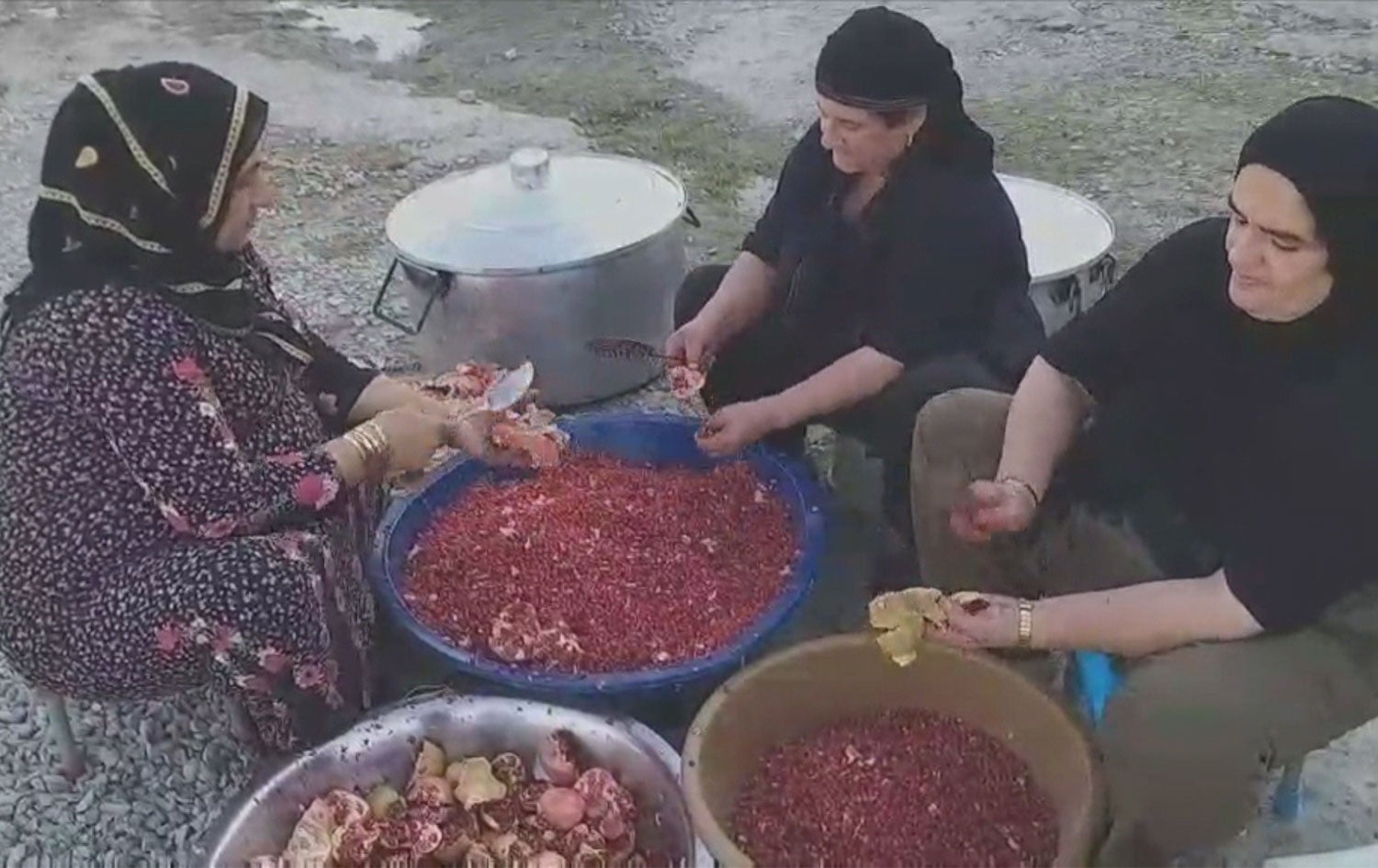 لە دەڤەری بتووێن ئێستا وەرز وەرزی هەنار رەنینە و هاونیشتیمانیان دەستیان کردووە بە رەنینی هەنار و بەشێکی دەکەن بە سرکەی هەنار، حاجی بەفرین خانمێکی دەسرەنگینی گوندەکەیە، ژنانی لە خۆی کۆکردووەتەوە و یەکی کەوگیرێکیان بەدەستەوەیە و دەستیان کردووە بە تەکاندنی هەنارەکە، دواتر لە رێگەی عەسارەیەکی دەستکردی خۆیان کە بە تەنەکە دروستکراوە، ئاوی لە دنکی هەنارەکان دەردەهێنن، دواتریش بە دار هەنارەکە بۆ ماوەی 12 کاژێر دەیکوڵێنن.