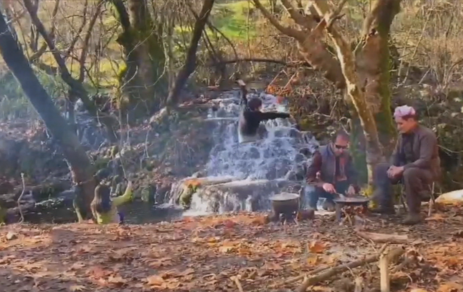 ئەوان بەدیار ئاگرەوە گۆرانی دەڵێن و خواردنیشیان هەر لەو سەیرانگەیە ئامادەکردووە، بەو کەشە ساردەش بەشێکیان لە نێو ئاودا مەلیان کردووە.