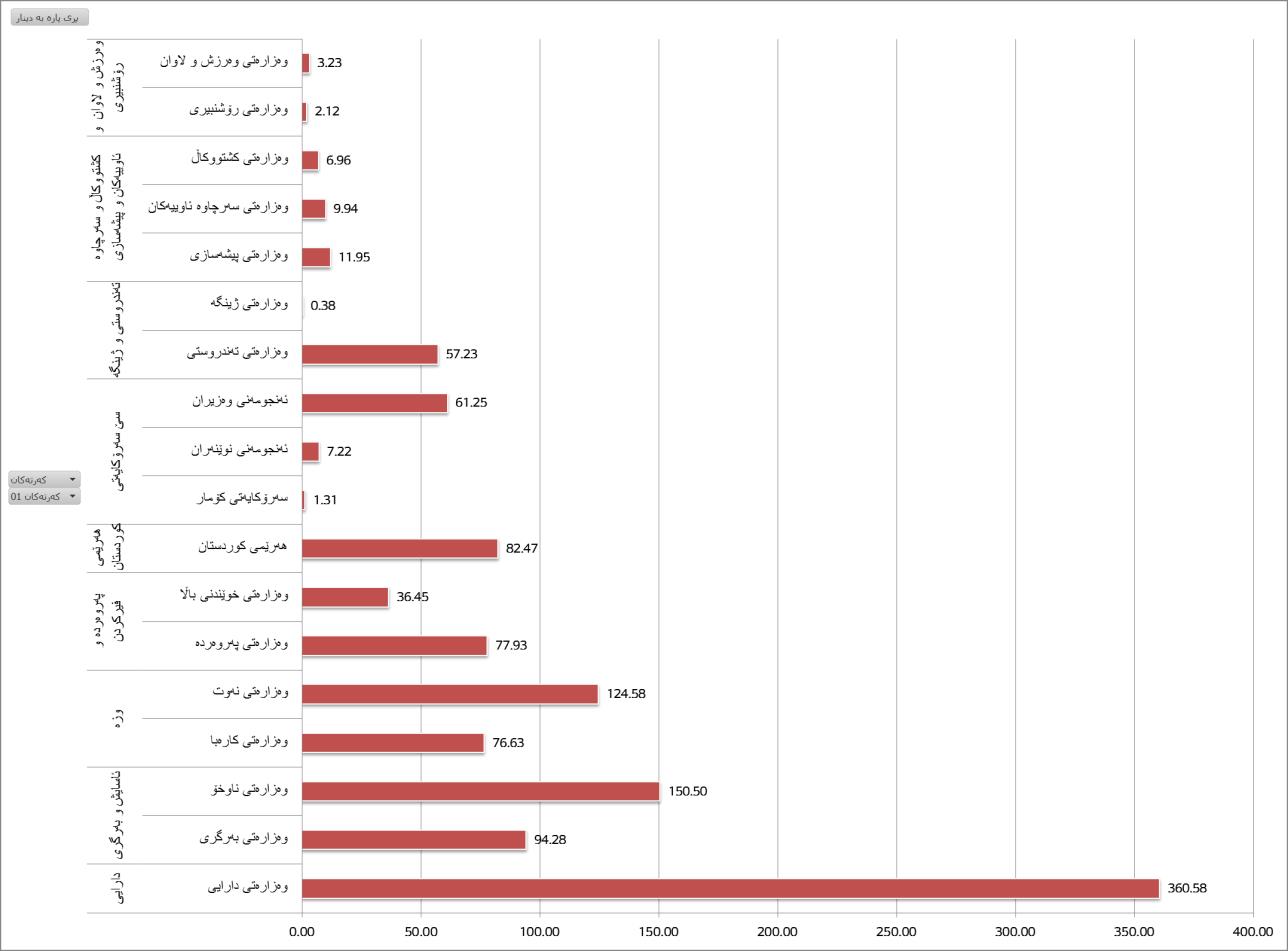 لەماوەی ئەو دوو دەیەدا بەرزترین رێژەی خەرجی بۆ وەزارەتی دارایی کەوا 25.18% خەرجییەکان بووە، بەڵام لەم بودجەیەدا رێژەکەی کەمبووەتەوە بۆ 20.3%، کە ئەمەش بەدڵنیاییەوە دەبێت بۆ کەرتێکی دیکەی رۆشتبێت. بەپلەی دووەم لە دوو دەیەی رابردوو و لەم یاسا پەسەندکراوەشدا خەرجییەکانی کەرتی ئەمنی بەتایبەت هەردوو وەزارەتی ناوخۆ و بەرگری دێت، کەوا لە دوو دەیەی رابردوو رێژەی 17% پێکهێناوە، بەڵام لەم پرۆژەیاسایەدا 10.69% پێکدەهێنێت.