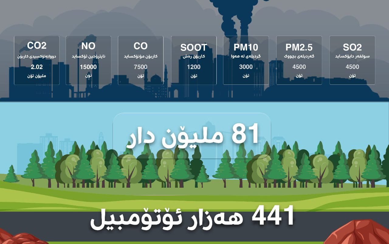 بۆ نموونە بڕی ئەو گازوایلەی سووتاوە لەساڵێکدا بووەتەهۆی دەردانی 15 هەزار تۆن نایترۆجین ئۆکساید، 7.5 هەزار تۆن کاربۆن مۆنۆکساید و 1.2 هەزار تۆن کاربۆی رەش کە ئەمانەش سەرچاوەی نەخۆشی سەرەتان، ترشەباران، گەرمبوونی کەش و بڵاوبوونەوەی نەخۆشی بووە. بڕوانە گرافیکی خوارەوە لەبارەی بڕی دەردانی گازەکانەوە لەو سووتەمەنیەی بۆ 9 کاژێر پیدانی کارەبا لە هەرێمی کوردستان لەساڵی 2021 بەکارهاتووە.