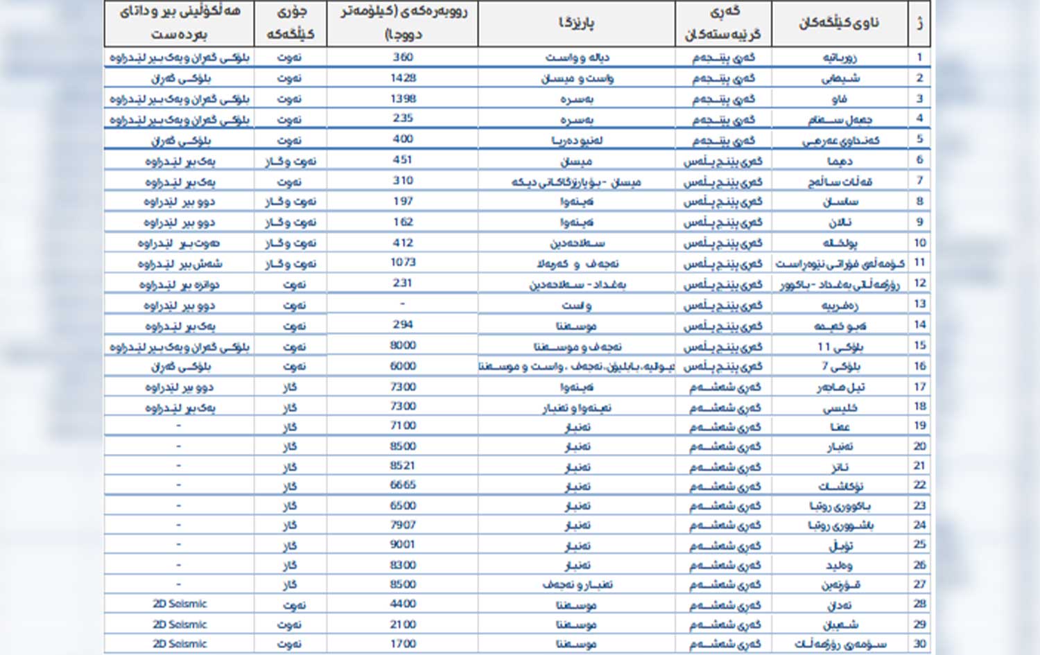 30 کێڵگەی نەوتی و گازی لە گرێبەستە نوێیەکان لە عێراق