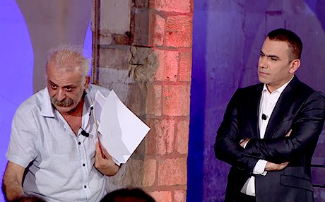 2. لەگەڵ هاتنەژوورەوەی، فەرهاد بە هێواشی دەچێت ئەو پەتی سێدارەیە لە ملی دەكات كە بۆ نمایش لە ستۆدیۆ هەڵواسراوە.میوانەكان پێش رەنج دەیبنین و پەرچەكرداری ئاسایی پیشاندەدەن و كەمتر دەشڵەژێن. بگرە داوا لە پێشكەشكاری بەرنامە دەكەن ئاگاداربێت، فەرهاد شتێك لە خۆی نەكات. پێرفۆرمانسێكی زۆر جوان دروستدەبێت: فەرهاد ستانداردی ستۆدیۆ دەشكێنێت و دەیكاتە شوێنێك بۆ نومایش. رەنج ئەمە سەرخۆی ناهێنێت، تەنها بەشێوە تەقلیدییەكە روو دەكاتە كامێرا و داوادەكات، كە پاش ناوبڕێك دێتەوە خزمەتیان.. لەگەڵ ئەوەشدا، ئەو ڤیدیۆیەی من بینم، تیایدا بەرنامەكە بەردەوامە و فەرهادیش دوای شكاندنی مێزێكی بەردەمی حاكمەكان، رووبەڕوویان دەبێتەوە تا داكۆكی و داوەرییەكی یاسایی لە كێشەكانی بكەن.