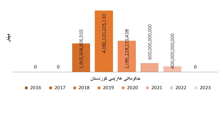 بەبێ گەڕانەوە بۆ ساڵانی دوای 2003، بەڵکو بە گەڕانەوە تەنیا بۆ ماوەی 8 ساڵی رابردوو کە داتاکانی بەردەستە و لەلایەن وەزارەتی دارایی عێراقەوە بڵاوکراونەتەوە، حکومەتی عێراق لە ساڵی 2016 دا هیچ یان سفر دیناری لە نۆ مانگی یەکەمی ساڵ بۆ هەرێمی کوردستان خەرجکردووە، ئەمساڵیش بەهەمان شێوەیە وەکو لە گرافیکی چواردا هاتووە.