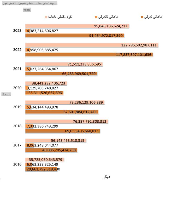 بەپێی داتا بڵاوکراوەکانی وەزارەتی دارایی عێراق، لەماوەی هەشت ساڵی رابردوودا، رۆژ بە رۆژ داهاتی نانەوتی کەمیکردووە و پەیوەست نەبووە بە بەرزی و نزمیی کۆی داهاتەوە. تەنانەت تاڕادەیەک پەیوەست نەبووە بە داهاتی نەوتەوە. بۆ نموونە لە 2016ـدا کۆی گشتیی داهات 35.7 تریلیۆن دینار بووە، کە 29.6 تریلیۆن دیناری داهاتی نەوتی و 6.06 تریلیۆن دیناریشی داهاتی نانەوتی بووە. بەڕێژەش داهاتی نەوتی 83% و داهاتی نانەوتی 17% بووە، بەڵام لە 2023ـدا لە نۆ مانگی یەکەمدا، کۆی گشتیی داهات 95.84 تریلیۆن دینار بووە، کە 91.46 تریلیۆن دیناری داهاتی نەوتی و 4.38 تریلیۆن دیناری داهاتی نانەوتی بووە، واتا داهاتی نەوتی 95% و داهاتی نانەوتی 5% بووە. لەو ماوەیەدا داهاتی نانەوتی بە بەراورد بە نەوت بەڕێژەی 12% کەمیکردووە، بە دیناری عێراقیش لە سەرووی 6 تریلیۆن کەمیکردووە بۆ 4.3 تریلیۆن دینار!
