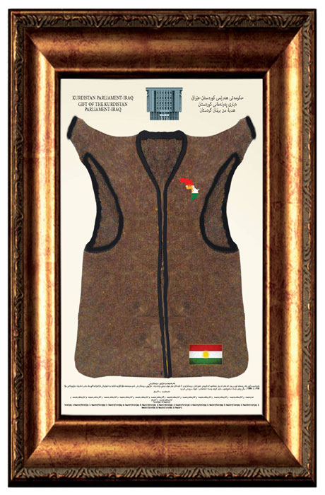 هونەرمەند هێمن خدر، جامانەی سوور و فەرەنجی دەكاتە لۆگۆ، بۆ ئەوەی پێشكەشی ئەو وەفدانە بكرێن كە سەردانی كوردستان دەكەن.
