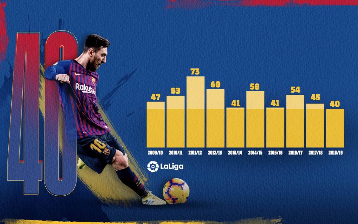 مێسی بۆ 11یەمین وەرز لەسەر یەک توانی 40 گۆڵ تۆمار بکات، لە سەرجەم خول و پاڵەوانییەتییەکان.