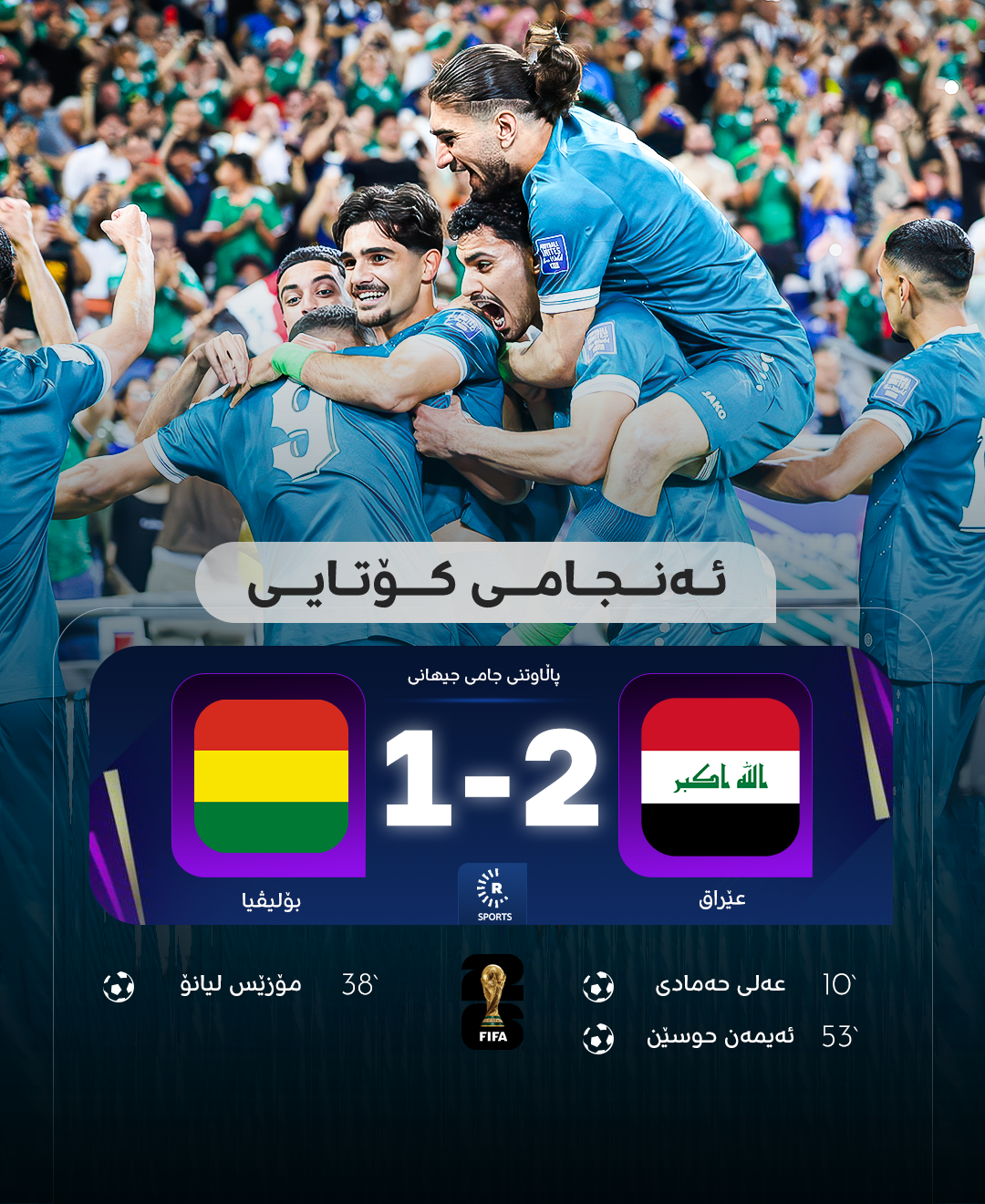 بەرەبەیانی ئەمڕۆ بەکاتی باشووری کوردستان، لە دوایین یاریی پاشکۆی کۆتایی جامی جیهانیی 2026، هەردوو هەڵبژاردەی عێراق و بۆلیڤیا لە مەکسیک رووبەڕووی یەکبوونەوە و عێراق یارییەکەی بە دوو گۆڵ بەرامبەر گۆڵێک بردەوە.