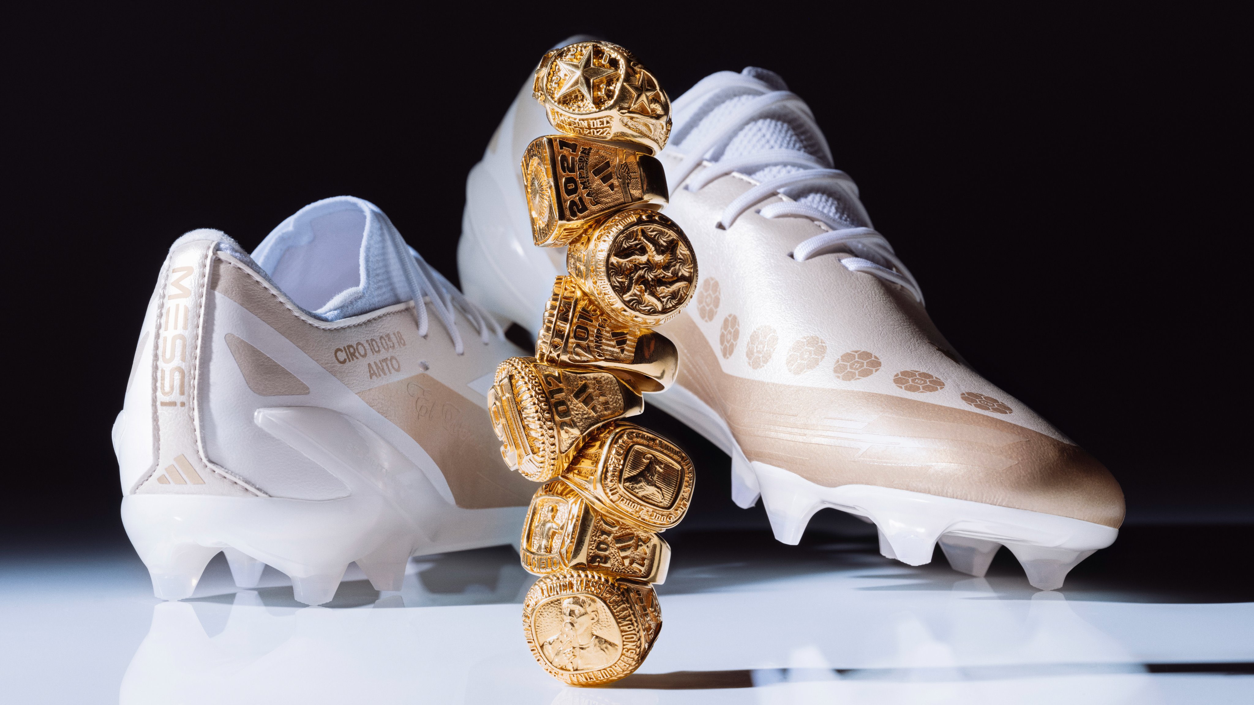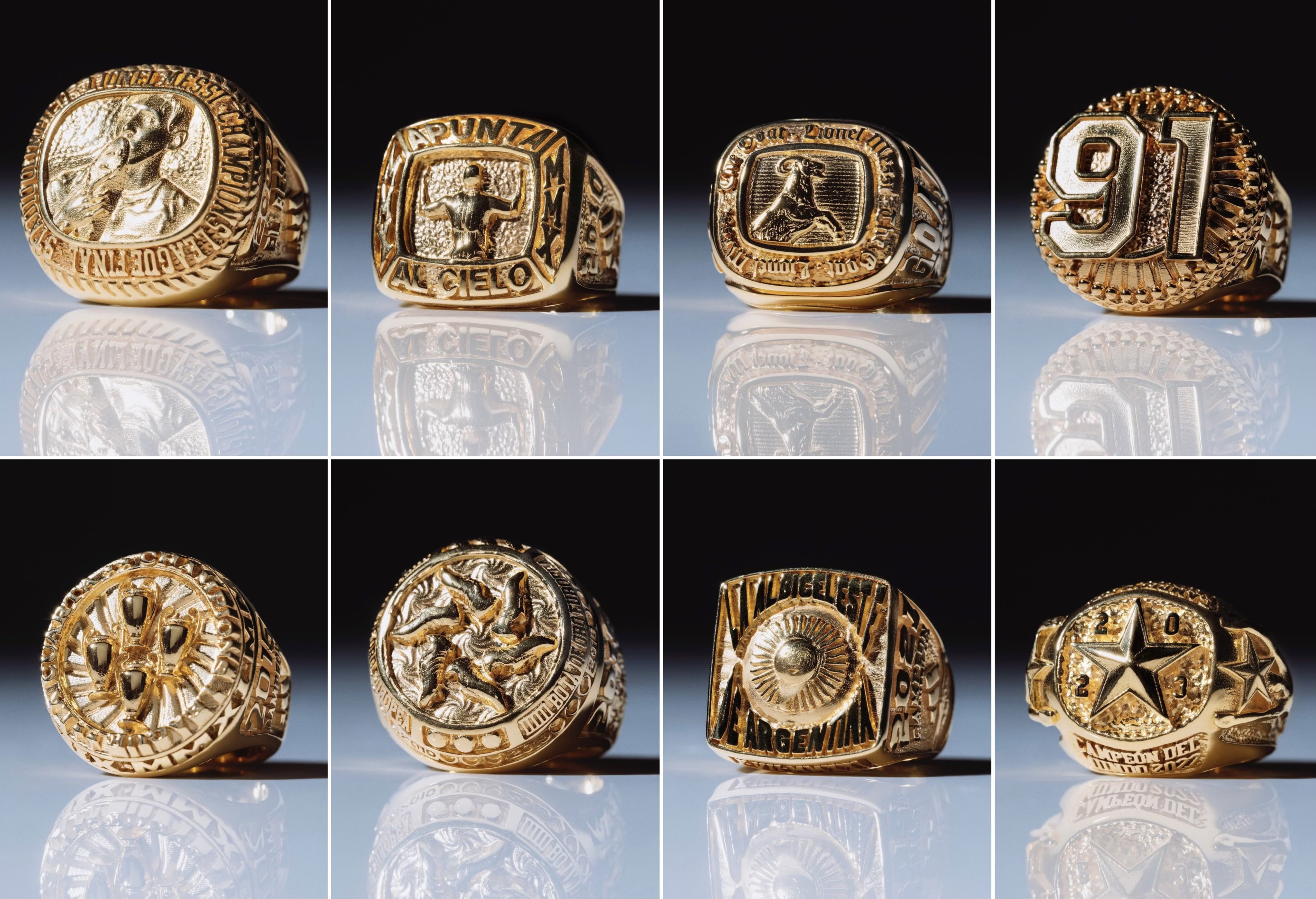 کۆمپانیای ئەیداس بەو بۆنەیەوە، 8 ئەنگوستیلەی زێڕی بۆ لیۆنێل مێسی دروستکردووە و هەریەکەیان بەشێوەیەک نەخشێنراون کە ئاماژەن بۆ سەرکەوتنەکانی لیۆ لە کاروانی یارییکردنیدا.