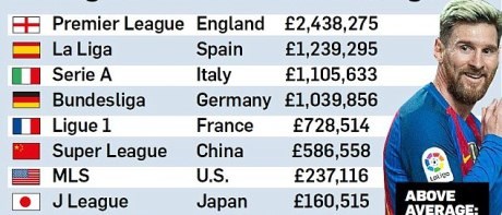 پێگەکە ئاشکرایکردووە، خولی ئینگلیزی زۆرترین مووچە دەدات بە یاریزانەکانی لە نێو کۆی هەموو خولەکانی جیهان، کە بۆ هەر یاریزانێک 2 ملیۆن و 880 هەزار یۆرۆیە.