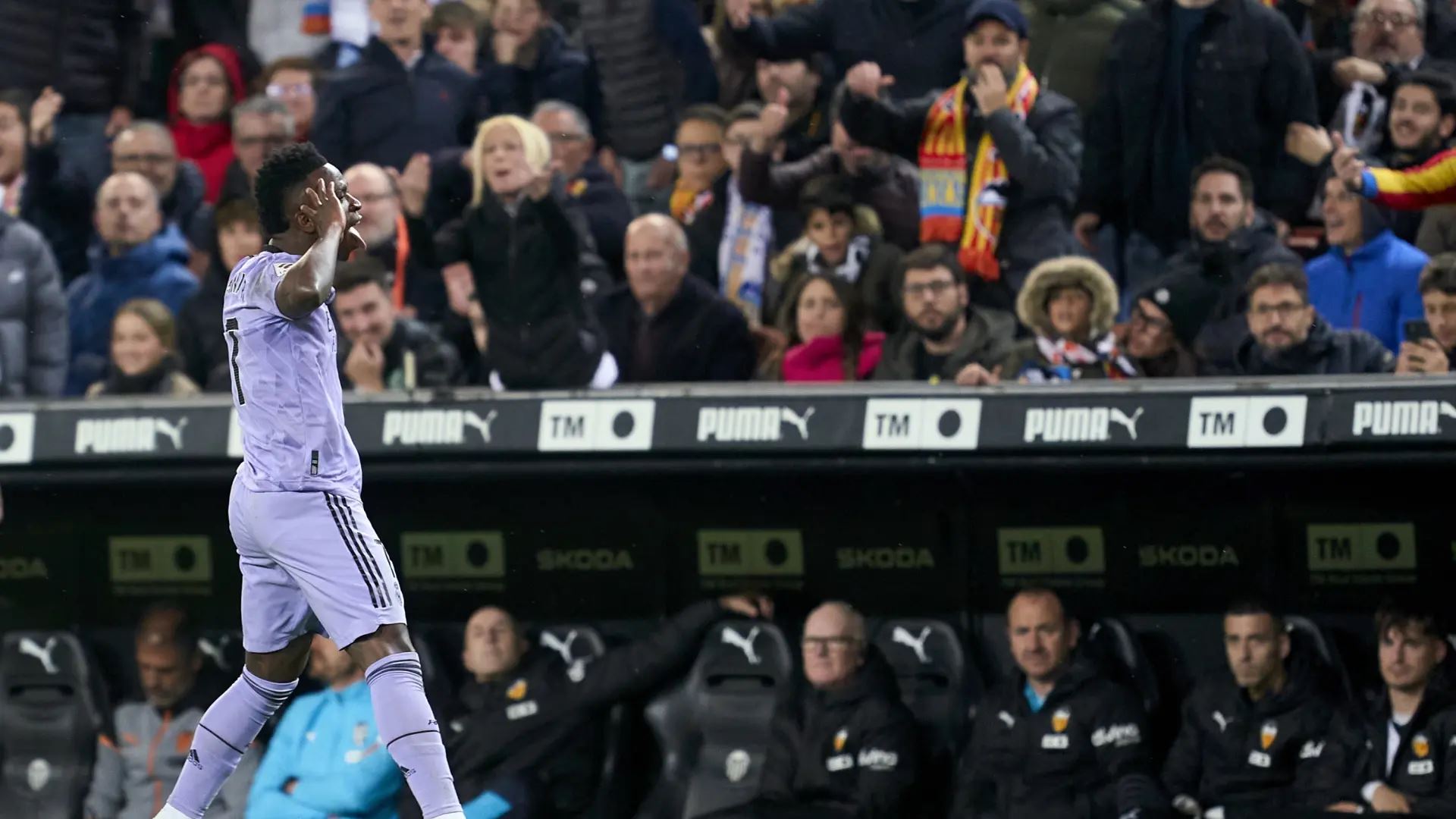 ئاهەنگگێڕانی ڤینیسیۆس جونیۆر بەرامبەر هاندەرانی ڤالێنسیا، دەوای ئەوەی گۆڵی دووەمی خۆی و یانەکەی تۆمارکرد