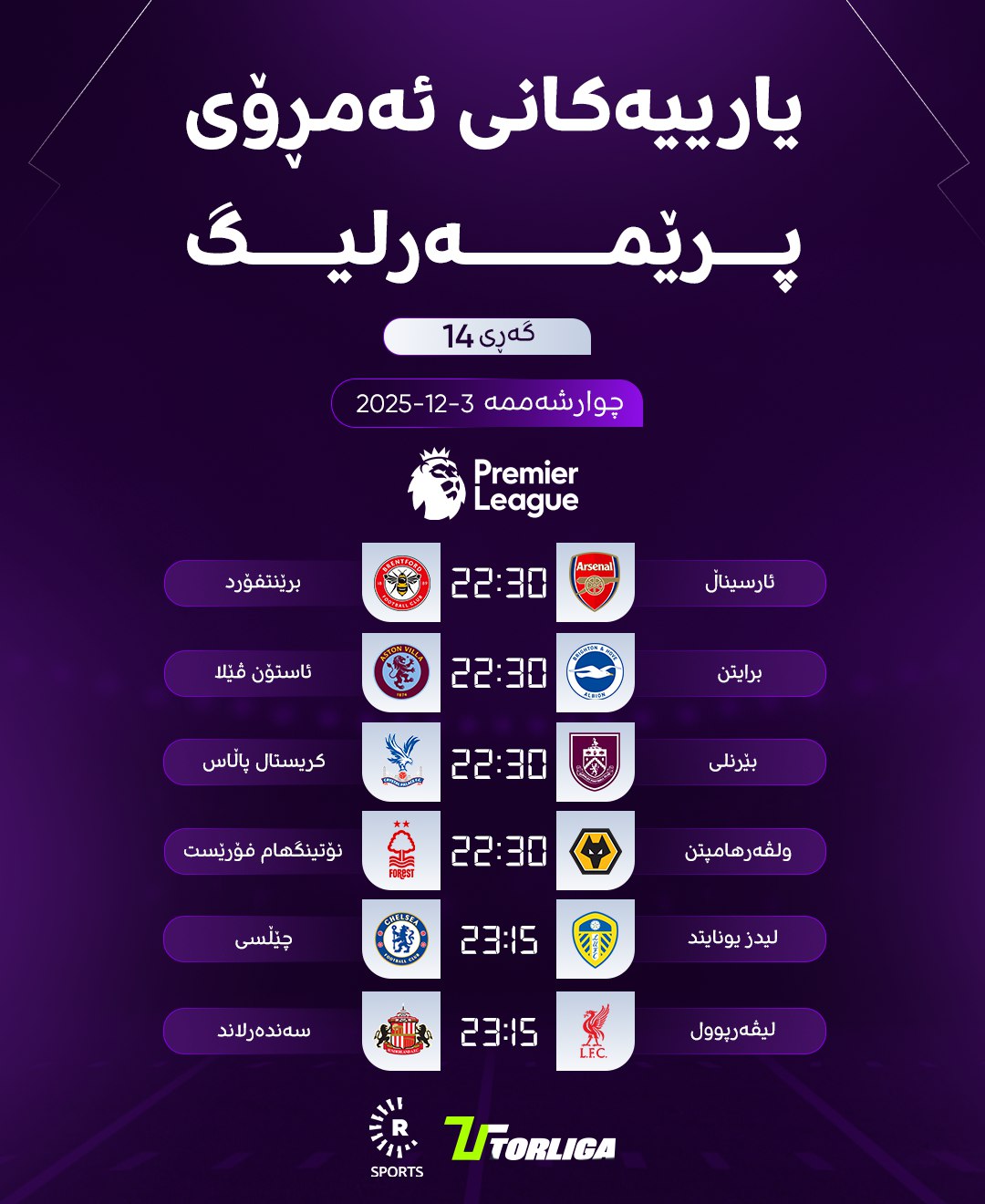 یانەی ئارسیناڵ دەیەوێت درێژە بە ئەنجامە باشەکانی بدات و شوێنی خۆی لە پلەی یەکەمی ریزبەندی پرێمەرلیگ بەهێزتربکات، کاتێک بەرامبەر یانەی برێنتفۆرد یاری دەکات.
