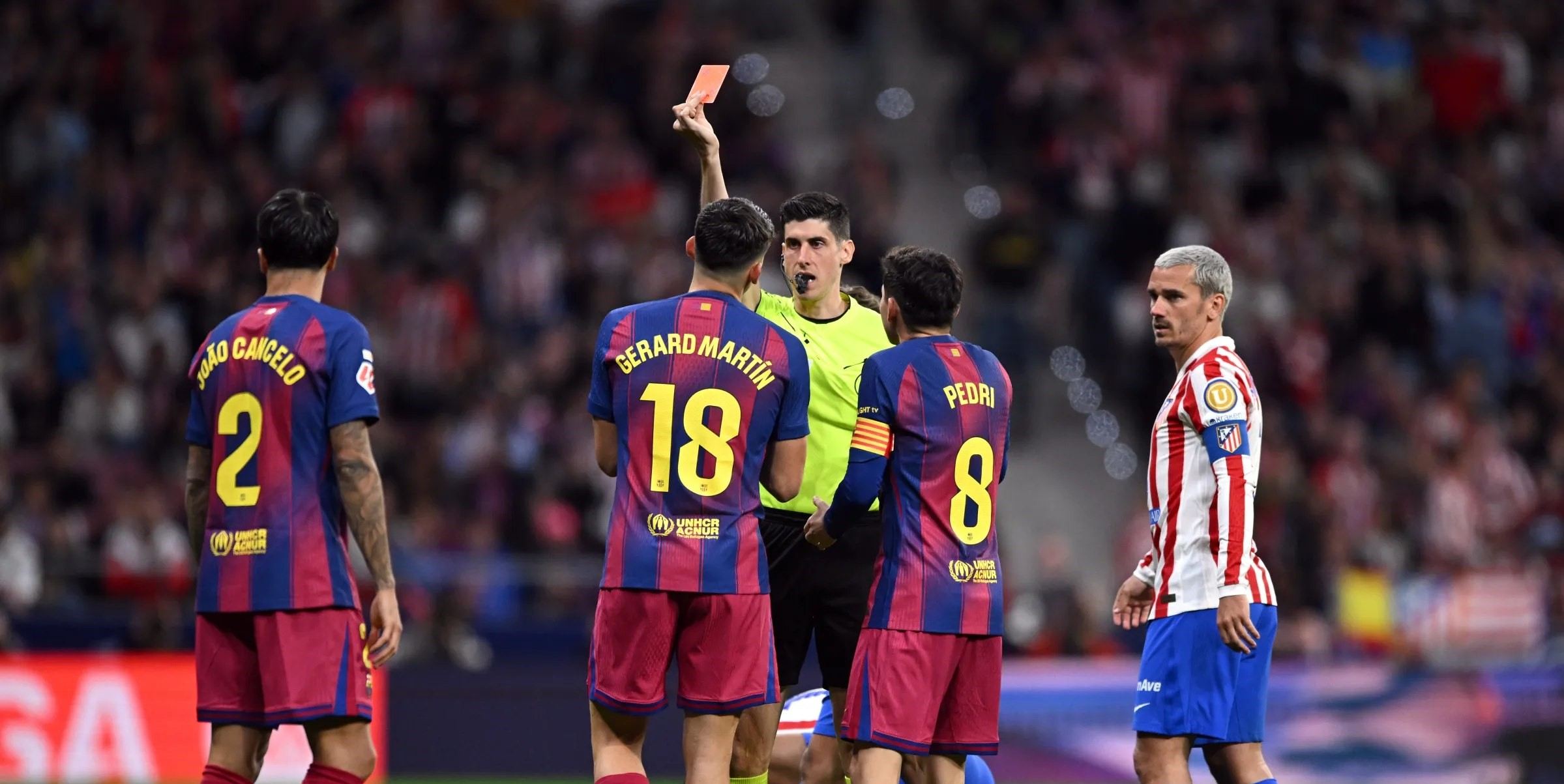 دیمەنی یەکەمی مشتومڕهەڵگری یارییەکە، بریتی بوو لە دەرکردنی نیکۆ گۆنزالێسی یاریزانی ئاتلێتیکۆ مەدرید، کە کارتی زەردی دووەمی وەرگرت بەهۆی لێدانی لە لامین یامال لە کاتی زیادکراوی نیوەی یەکەمدا، بەڵام ڤار ناوبژیوانی بانگ کرد و بڕیاریدا کارتی زەردی دووەم هەڵبوەشێنێتەوە و لەبری ئەوە کارتی سووری راستەوخۆ بەکاربهێنێت.
