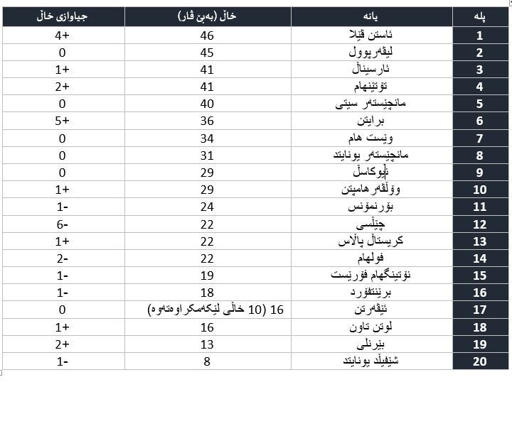 لیڤەرپوول بۆ پلەی دووەم دابەزیوە و ژمارەی خاڵەکانی وەک خۆیەتی، ئارسیناڵ خاڵێک زیاتری بەدەستهێناوە و تۆتێنهامیش دوو خاڵ، مانچێستەر سیتی بۆ پلەی پێنجەم دابەزیوە و مانچێستەر یونایتد لە پلەی هەشتەم ماوەتەوە و خاڵەکانیان گۆڕانکارییان بەسەردا نەهاتووە، برایتن زۆرترین خاڵی بەهۆی ڤار لەدەستداوە بەشێوەیەک کە بەبێ ڤار شەش خاڵ زیاتری بەدەستدەهێنا و بە 36 خاڵ پلەی شەشەمی دەگرت، چێڵسیش زۆرترین سوودی لەو تەکنەلۆژیایە وەرگرتووە و ئەگەر ڤار نەبووایە شەش خاڵ کەمتری دەبوو.