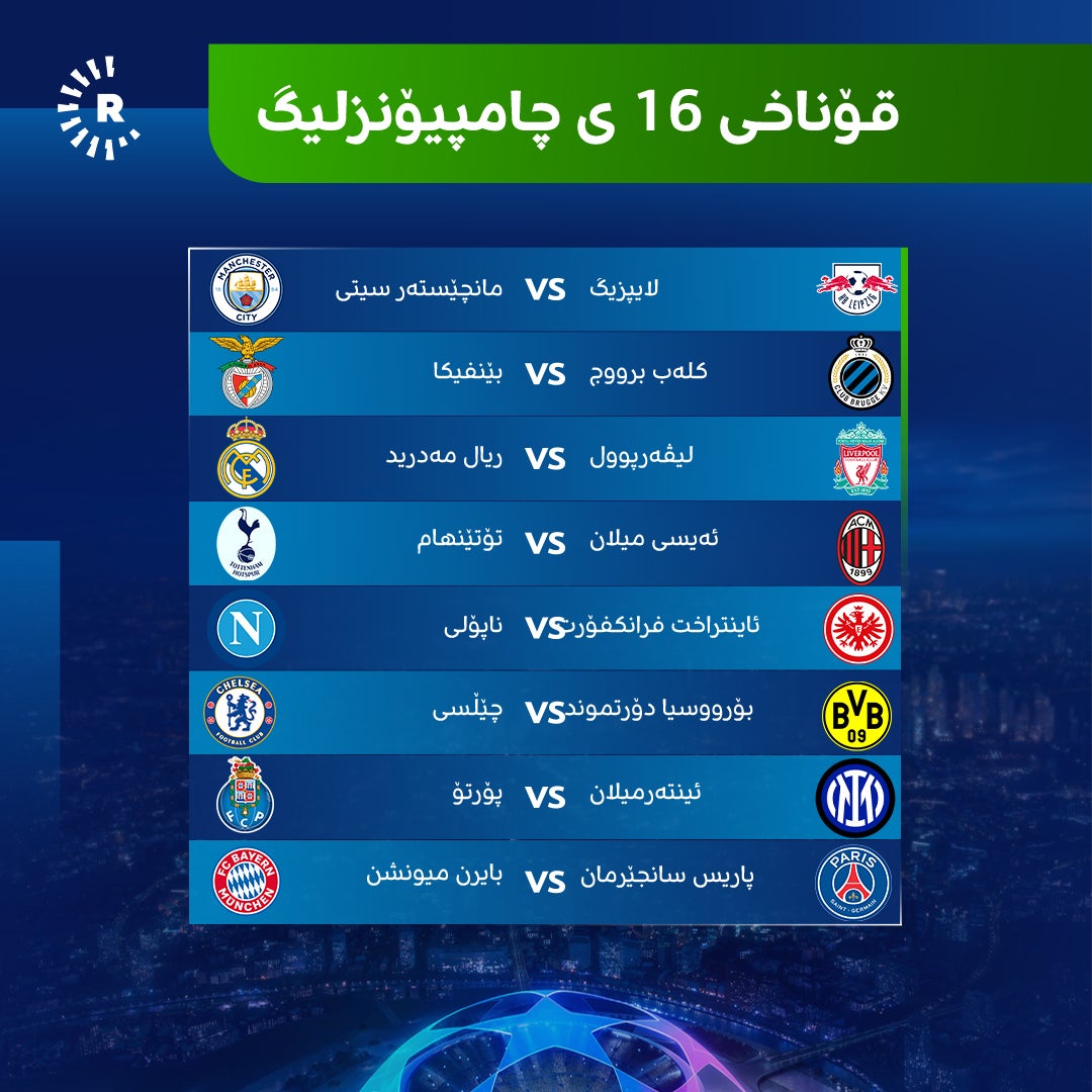 یارییەکانی قۆناخی 16ـی چامپیۆنزلیگ کەی دەکرێن؟