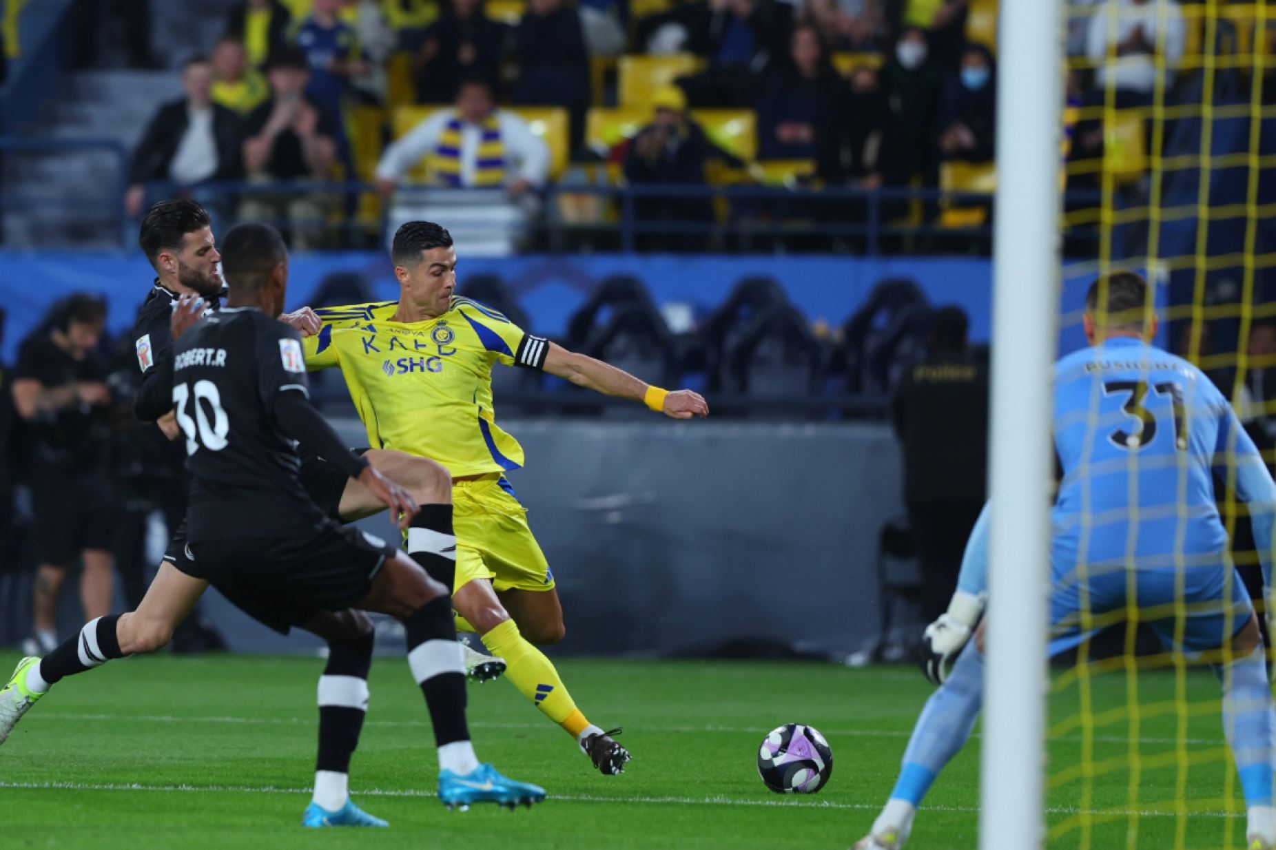 نەسڕ لە کاتی زیادکراوی نیوەی یەکەمدا دوو گۆڵی تۆمارکرد، کە یەکەمیان لە خولەکی 45+2 لەلایەن ئەیمەن یەحیاوە تۆمارکرد، بەرلەوەی رۆناڵدۆ دوای 7 خولەک گۆڵەکەی تۆمار بکات، کە گۆڵی ژمارە 926ـی کاروانی وەرزشیی خۆی بوو.