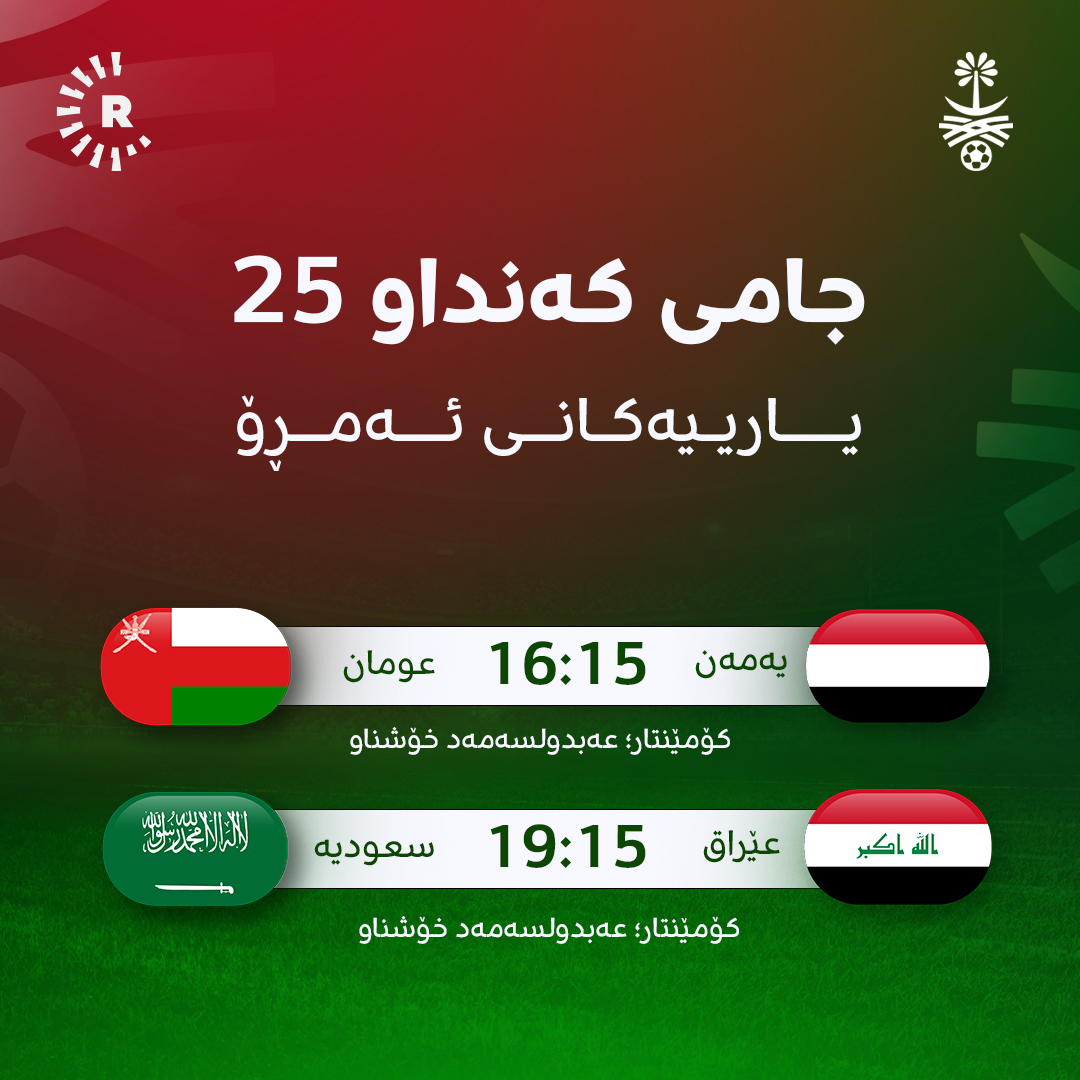 یارییەکانی جامی کەنداوی 25 راستەوخۆ لە پەیجی رووداو سپۆرتس لە فەیسبووک و پەیجی رووداو عەرەبیە، لە فەیسبووک بە هەردوو کۆمێنتاری کوردی و عەرەبی دەگوازرێنەوە.