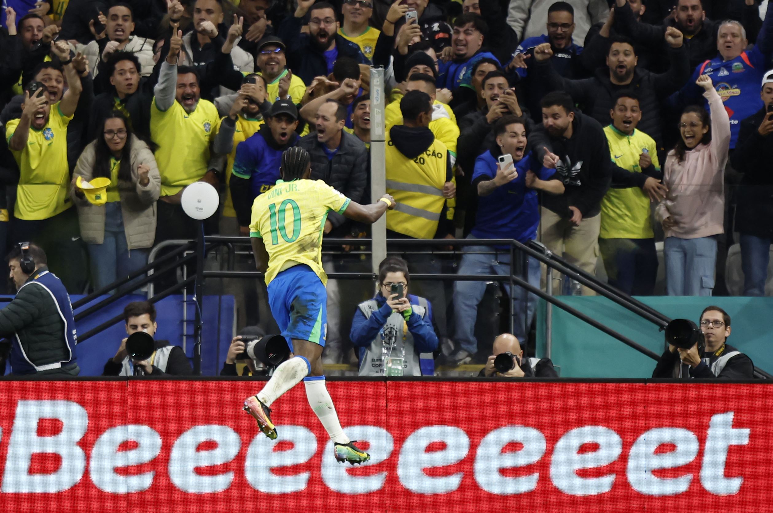 پێشکۆتاییهاتنی نیوەی یەکەمی یارییەکە ڤینیسیۆس جونیۆر گۆڵێکی بۆ هەڵبژاردەی بەرازیل تۆمارکرد و هاندەرانی نێو یاریگەی کۆرێنچیانزی دڵخۆشکرد.