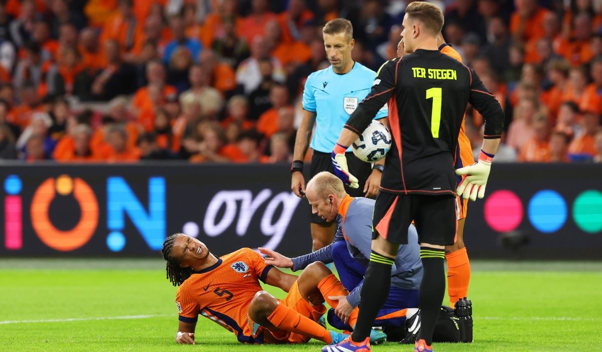 ناسان ئاکێی بەرگریکەری یانەی مانچێستەر سیتی ئینگلیزی لە یاریی نێوان هەردوو هەڵبژاردەی ئەڵمانیا و هۆڵەندا دووچاری پێکانبوو و پێشبینیدەکرێت بۆ چەند هەفتەیەک لە یاریگەکان دووربکەوێتەوە.