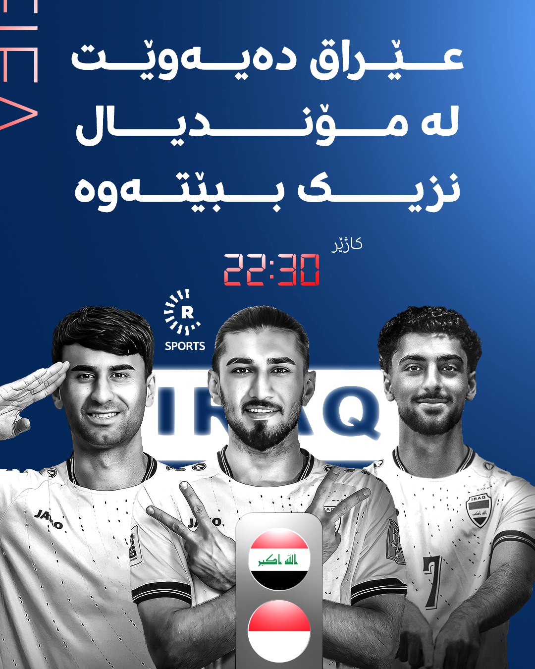 ئەمشەو لە یەکەم یارییدا لە پاشکۆی پاڵاوتنەکانی مۆندیالدا، کاژێر 22:30 هەڵبژاردەی عێراق لە یەکەم دەرکەوتنیدا بەرامبەر ئیندۆنیزیا یاری دەکات و رۆژی سێشەممەش رووبەڕووی سعودیە دەبێتەوە بۆ یەکلاکردنەوەی بلیتێکی راستەوخۆی مۆندیالی 2026.