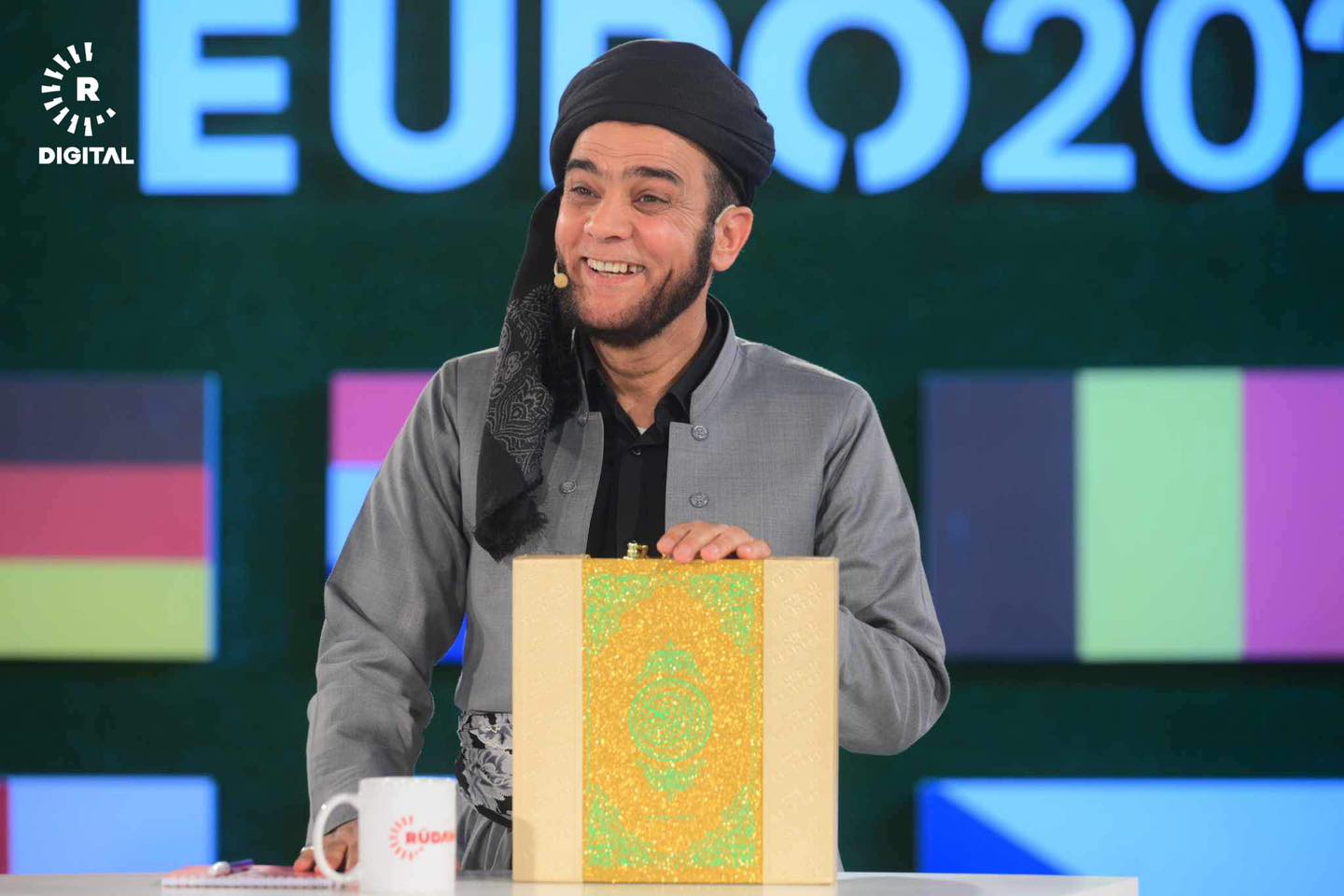 ئەو مامۆستا ئایینییە بە قورئانێکی پیرۆزەوە ئامادەی بەرنامەکەی رووداو بوو، و پرسیارێکی لە رێبوار محەممەدی پێشکێشکاری بەرنامەی یۆرۆی 2024 کرد و دواتر قورئانەکەی بەدیاری پێشکێشی تۆڕی میدیای رووداو کرد.