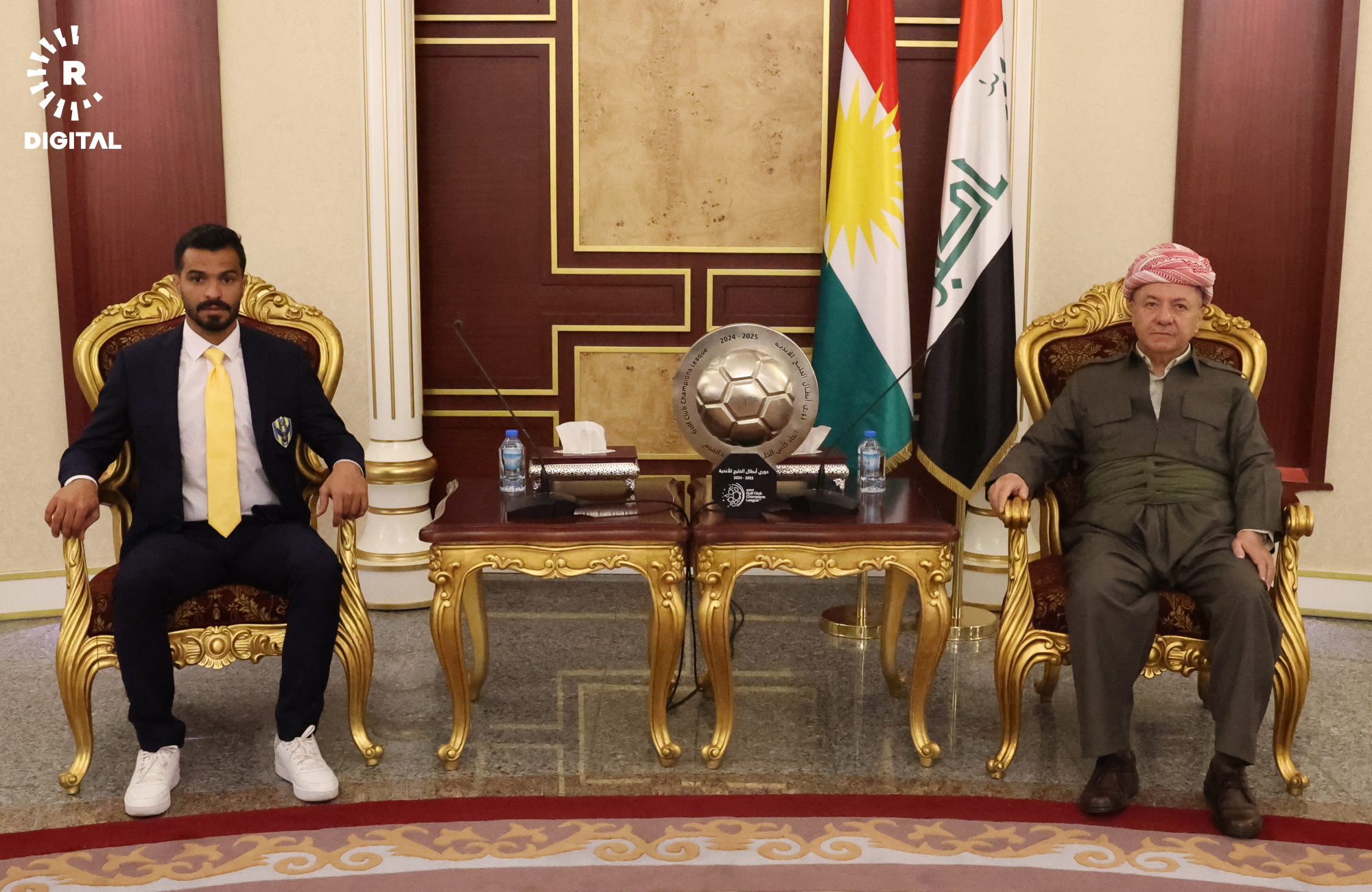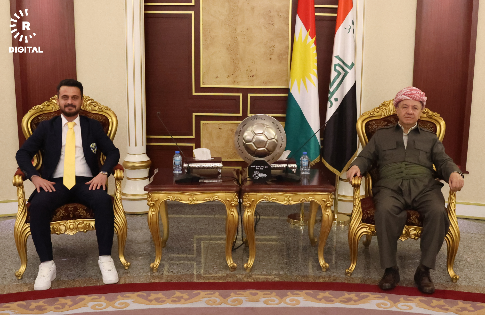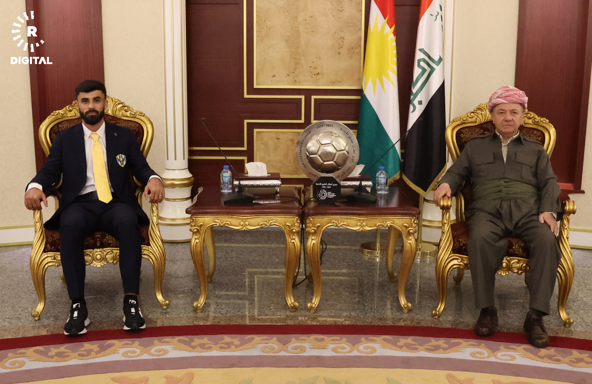 سەرۆک بارزانی، پێشوازیی لە یاریزانانی یانەی دهۆک کرد و بەبۆنەی بردنەوەی نازناوی جامی کەنداو، خەڵاتی رێزلێنانی پێدان و پێیگوتن "ئێوە دەتوانن لە سیاسەت زیاتر و باشتر دۆزی گەلەكەتان بە جیهان بناسێنن."