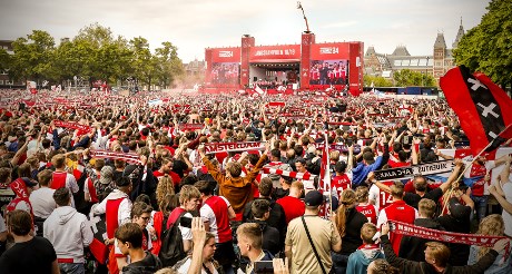 یاریزانانی یانەی ئەیاکس ئەمستردام لەگەڵ نازناوی خولی هۆڵەندا لە ئەمستردام لەگەڵ هاندەرانی یانەکەیان ئاهەنگیانگێڕا.