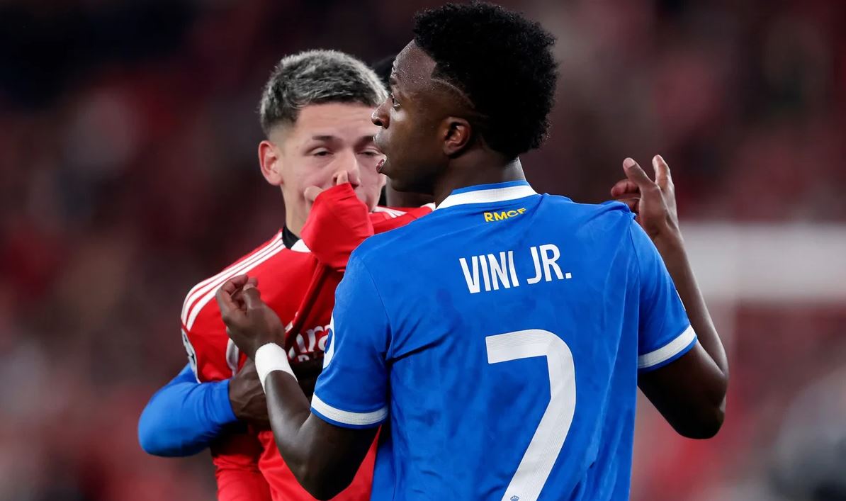 لە رووبەڕووبوونەوەی بێنفیکا و ریال مەدرید، لە یاریی چوونی پلەی ئۆفی چامپیۆنزلیگدا ئاژاوە و کێشە دروست بوو، دوای ئەوەی ڤینیسیۆس بەهۆی شێوازی ئاهەنگگێڕانی بۆ گۆڵەکەی لەبەردەم هاندەرانی بێنفیکادا رووبەڕووی رەخنەی یاریزانانی یانەی خاوەن ماڵ بووە و جیانلوکا پرێستیانی، یاریزانی ئەرجەنتینی دەمی بە درێسەکەی دەمی داپۆشیو قسەیەکی بە ڤینی گوت. ئەویش رایکردە لای ناوبژیوان و پێگوت "ئەو یاریزانە پێمدەڵێت مەیموون". ئیدی یارییەکە بۆ ماوەیەک راگیرا.