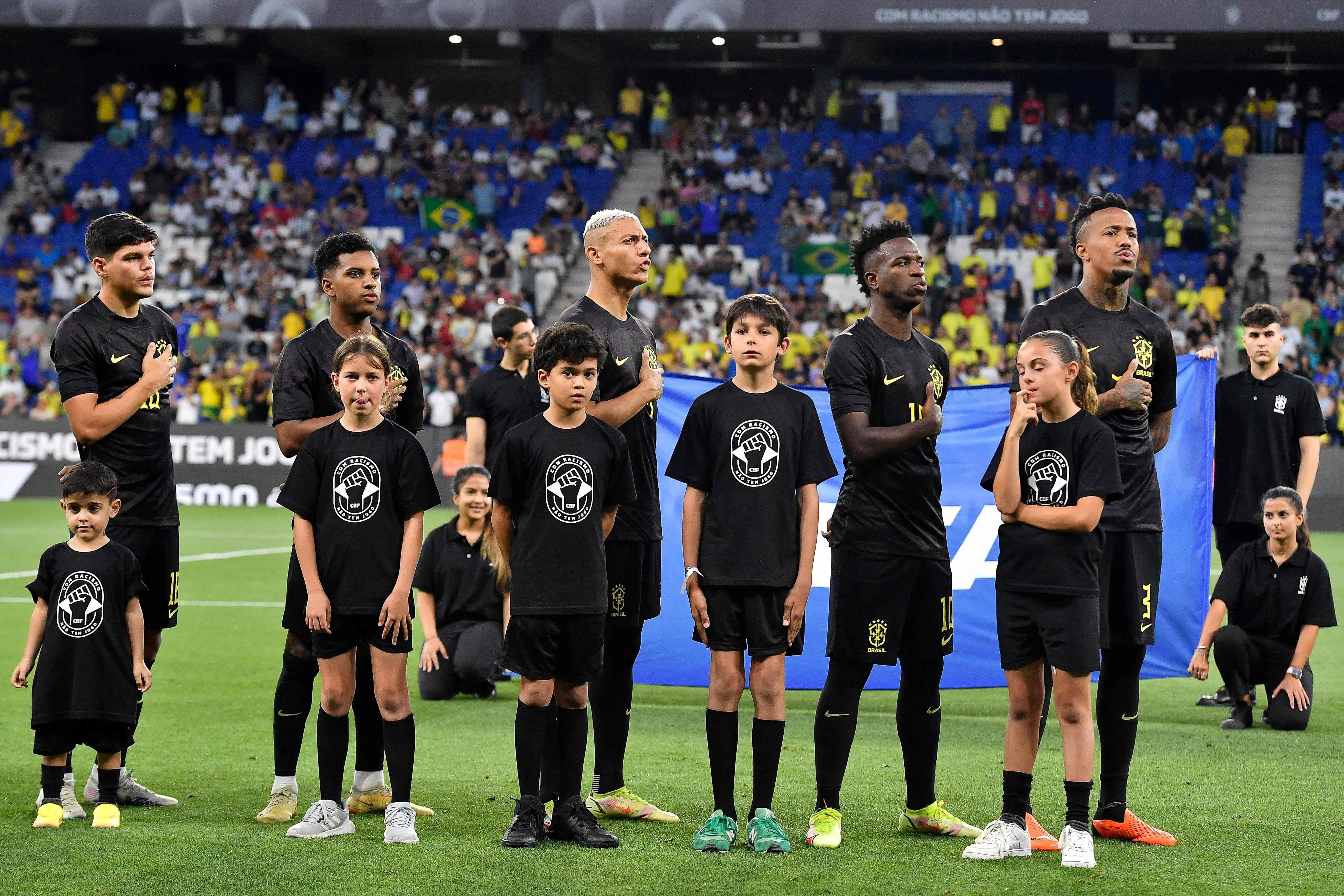 هەڵبژاردەی بەرازیل بۆ پاڵپشتیکردن لە ڤینیسیۆس جونیۆر، ئەستێرەی لاوی هەڵبژاردەکەی و یانەی ریال مەدرید لە رووبەڕووبوونەوەی رەگەزپەرستیدا یارییەکی دۆستانەی ئەنجامدا و سەرکەوتنی بەدەستهێنا.