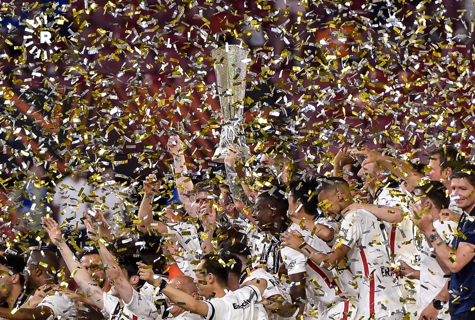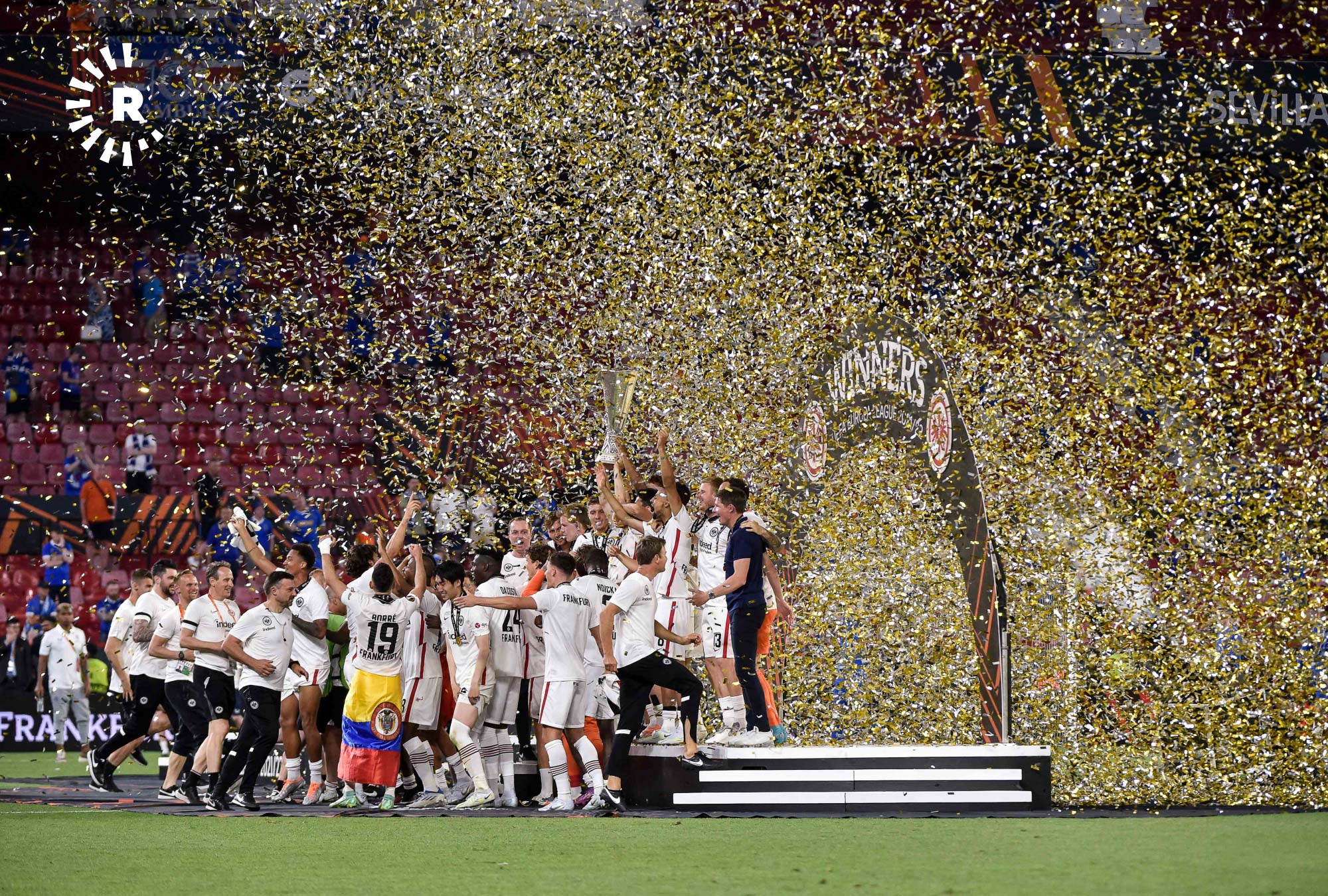 دوای بردنەوەی یارییەکە، یاریزان و هاندەرانی یانەی ئیتراخت فرانکفۆرت شێتانە ئاهەنگیان گێڕا، کە بە درێژایی پاڵەوانێتییەکە پشت و پەنایەکی بەهێزی یانەکەیان بوون و هۆکارێکی سەرەکی بوون بۆ بردنەوەی ئەو نازناوە ئەوروپییە.