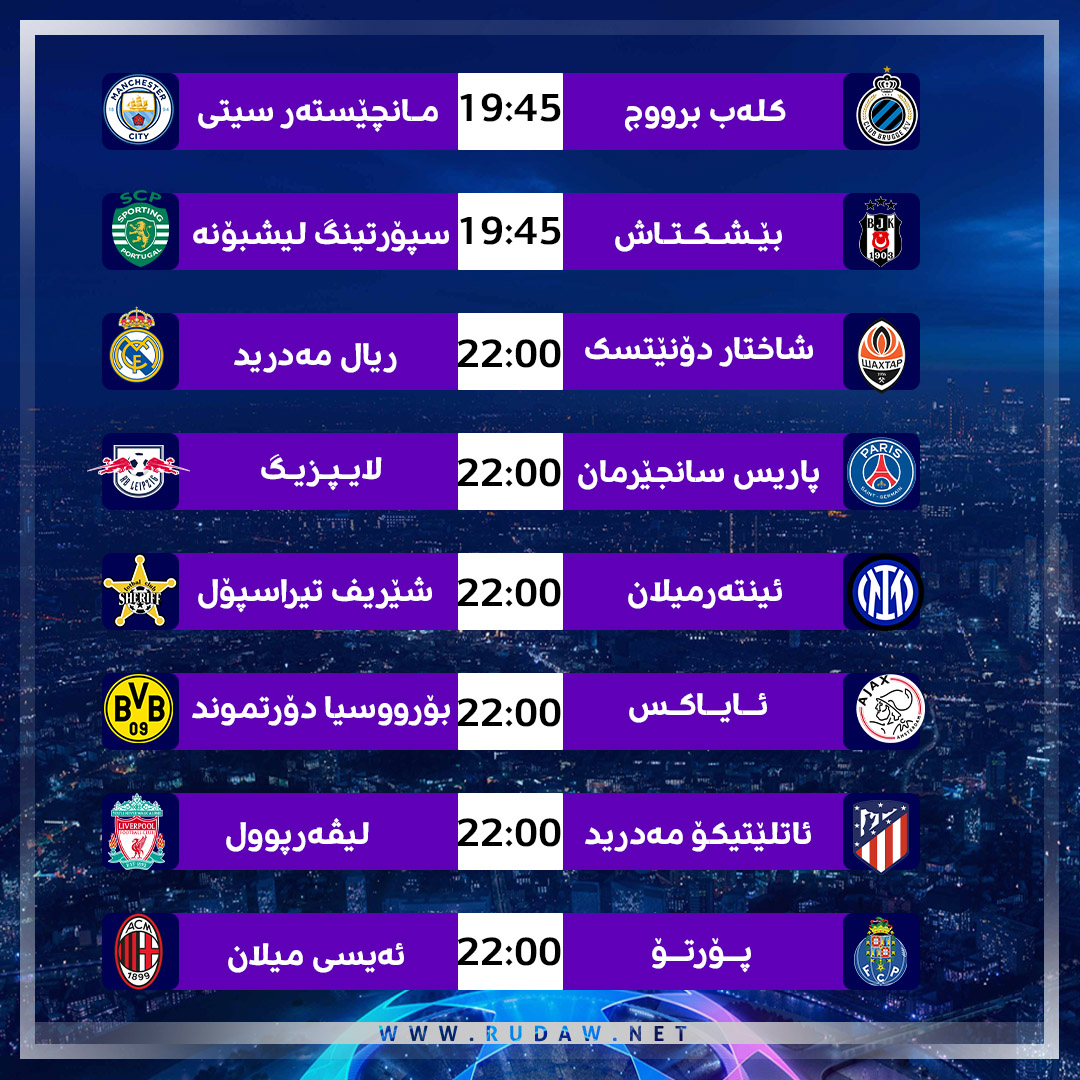 لە رکابەرییەکانی کۆمەڵەی دووەمدا و لە یاریی لووتکەی ئەم گەڕەی چامپیۆنزلیگدا، واندا میترۆ پۆلیتانۆ لە مەدرید یەکێک لە بەهێزترین و سەرنجڕاکێشترین یارییەکان بەخۆیەوە دەبینێت، کاتێک ئاتلێتیکۆ مەدریدی ئیسپانی میوانداری لیڤەرپوولی ئینگلیزی دەکات.