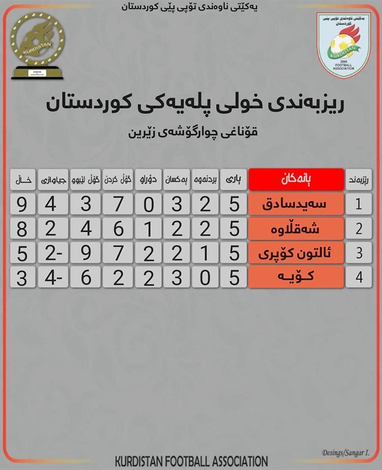 ئەمڕۆ چوارشەممە لە دوایین گەڕی قۆناخی چوارگۆشەی زێڕینی خولی یانە پلەیەکەکانی کوردستان دوو یاری بەڕێوەدەچن.
