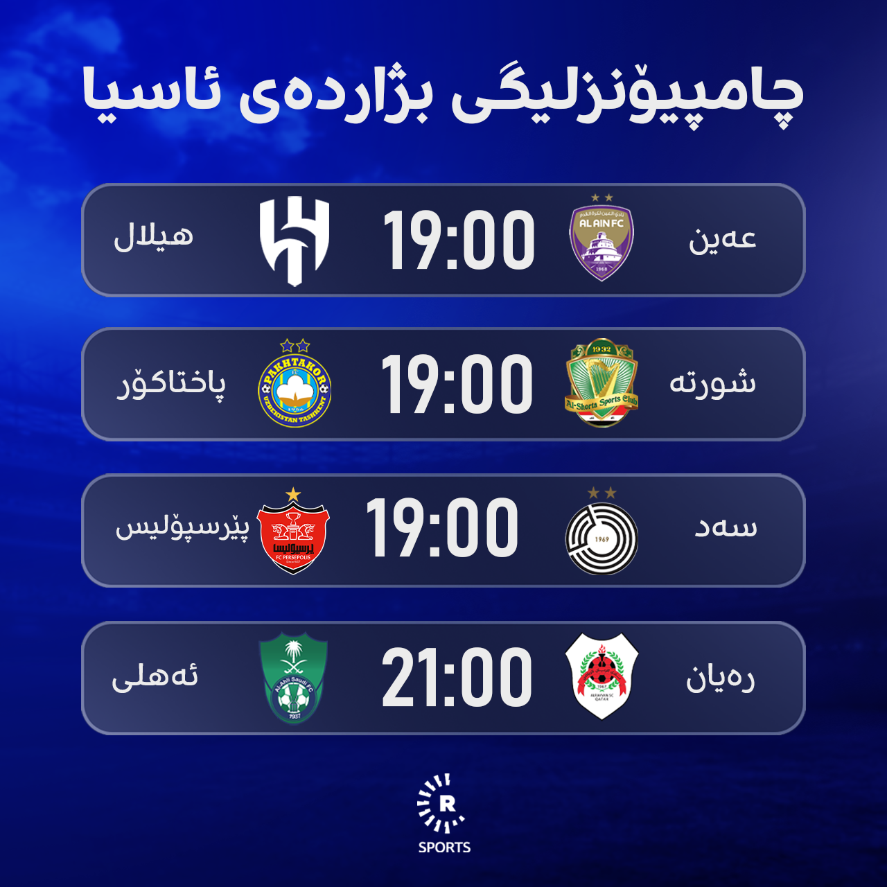 هەر لە چامپیۆنزلیگی بژاردەی ئاسیا، یانەی سەدی قەتەری بەرامبەر پێرسپۆلیسی ئێرانی یاری دەکات و رەیانی قەتەری میوانداری یانەی ئەهلی سعودی دەکات.