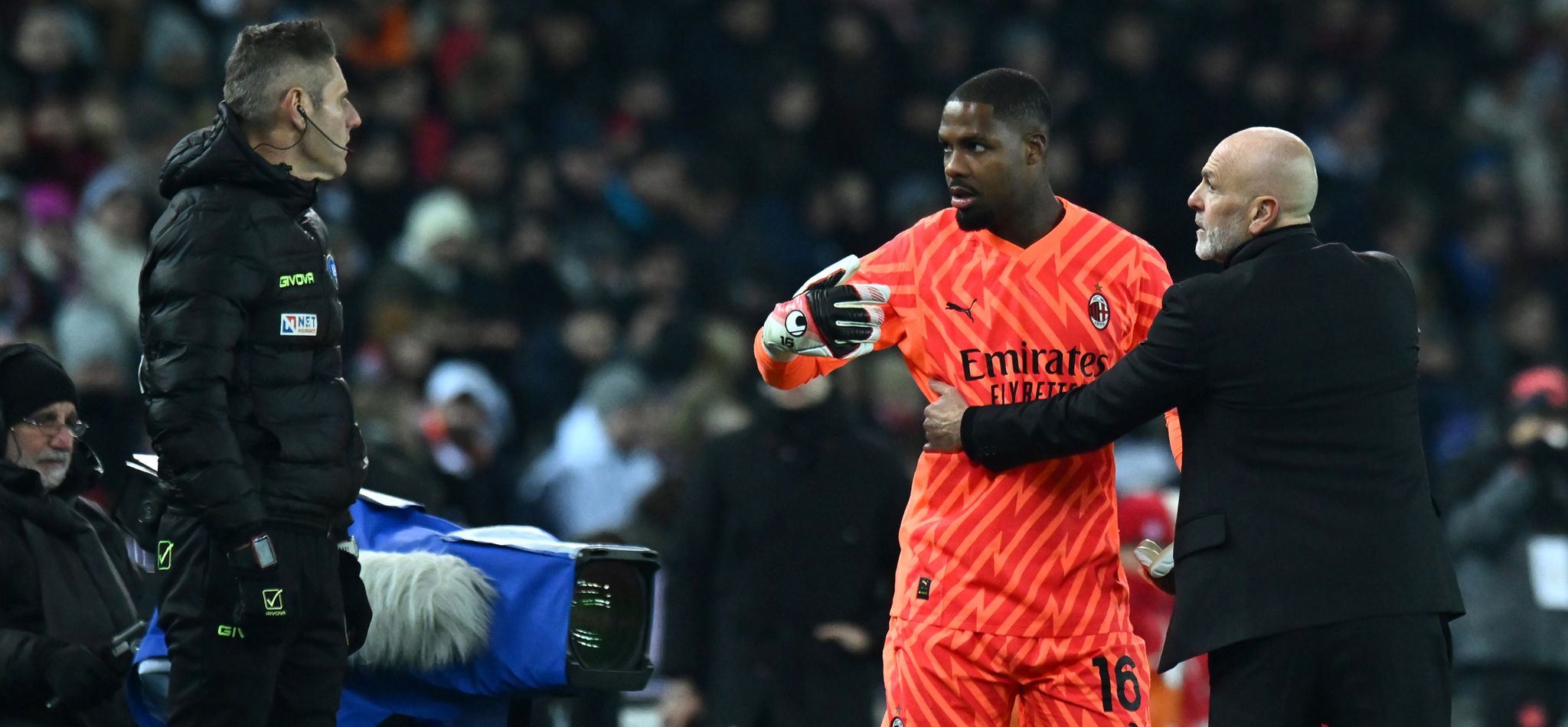 لە خولەکی 33ـی یارییەکە ماینان دەیەوێت لێدانی گۆڵ جێبەجێ بکات، بەڵام لەو کاتەدا وەک خۆی دەڵێت، لەلایەن هاندەرانی ئودینێزییەوە رووبەڕووی رەگەزپەرستی دەبێتەوە، بەو هۆیەوە گۆڵپارێزە فەرەنسییەکە ئاماژە بۆ یاریزانانی هاوڕێی دەکات بۆ ئەوەی بوەستن، دواتر دەچێتە لای ناوبژیوان و قسەی لەگەڵدا دەکات و پاشان دەچێتە دەرەوەی یاریگە. دوای چەند خولەکێک لە وەستانی یارییەکە، ماینان و یاریزانەکانی دیکەی میلان گەڕانەوە نێو یاریگە و جارێکی دیکە یارییەکە دەستی پێکردەوە.