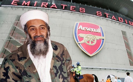 ههر ئهوهنده نییه، بن لادن چووهته شاری كۆبنهاگن بۆ ئامادهبوون له یاری كۆتایی پاڵهوانیهتییهكه له نێوان ئارسناڵ و پارمای ئیتاڵی، كه ئارسناڵ یارییهكهی به تاكه گۆڵی ئالان سمیس بردهوه. دوای بڵاوكردنهوهی ئهو زانیاریانه بهشێك له هاندهره بچووكهكانی ئارسناڵ به خۆشهویستی بن لادن بۆ یانهكهیان لهخۆبایی بوون و به گاڵتهوه هوتافیان دهكێشا "ئوسامه ئۆه ئۆه! ئهو له تاڵیبانهوه هاتووه! ئوسامه ئۆه ئۆه! ئهو هاندهری ئارسناڵه". یانهكه بهرامبهر ئهو ههموو شته ناچار بوو ههنگاوێك بهاوێت و له 11ی سپتێمبهری 2001 راگهیاندراوێكی بڵاوكردهوه و تێیدا دووپاتیكردهوه، بن لادن كهسێكی چارهنهویسته و له راگهیاندراوهكهدا هاتووه" له رێگهی رۆژنامهكانهوه زانیومانه بن لادن له یاریگهكانمان ئاماده دهبوو، به دڵنیاییهوه له ئایندهدا نابێته كهسێكی پێشوازی لێكراو".
