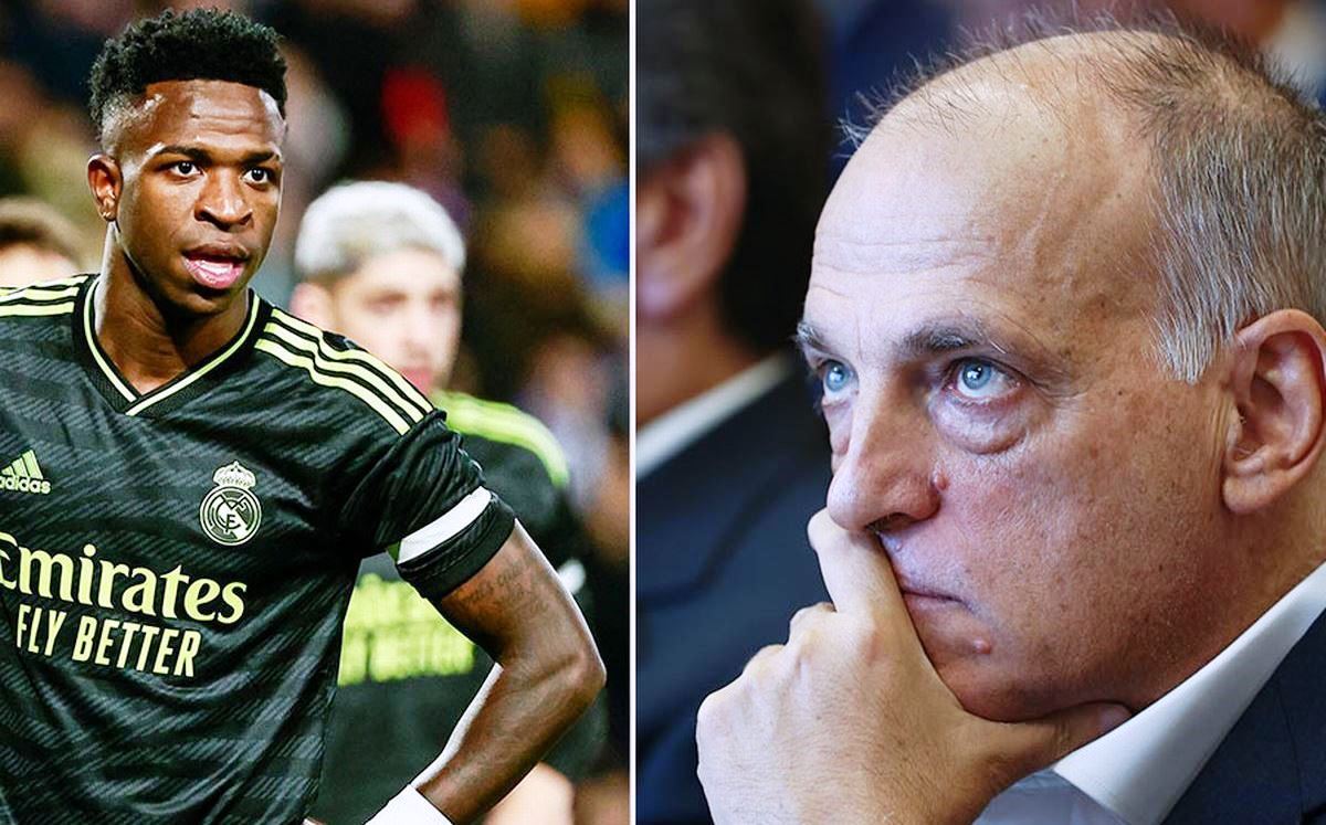 سەرۆکی لالیگا، هەروەها گوتی "وەک پێشتر ئاماژەم بۆ کردووە، 10 دۆسیەمان پێشکەشی دەسەڵاتی دادوەری کردووە. کە ناچار نەبووین، بەڵام ویستمان ئەوە بکەین، چونکە ئێمە رەگەزپەرستیمان ناوێت لە تۆپی پێدا، زیاتر بەرامبەر بە یاریزانێک کە ببێتە ئەستێرەی تۆپی پێ، ڤینیسیۆس ئەستێرەی تۆپی پێیە!".